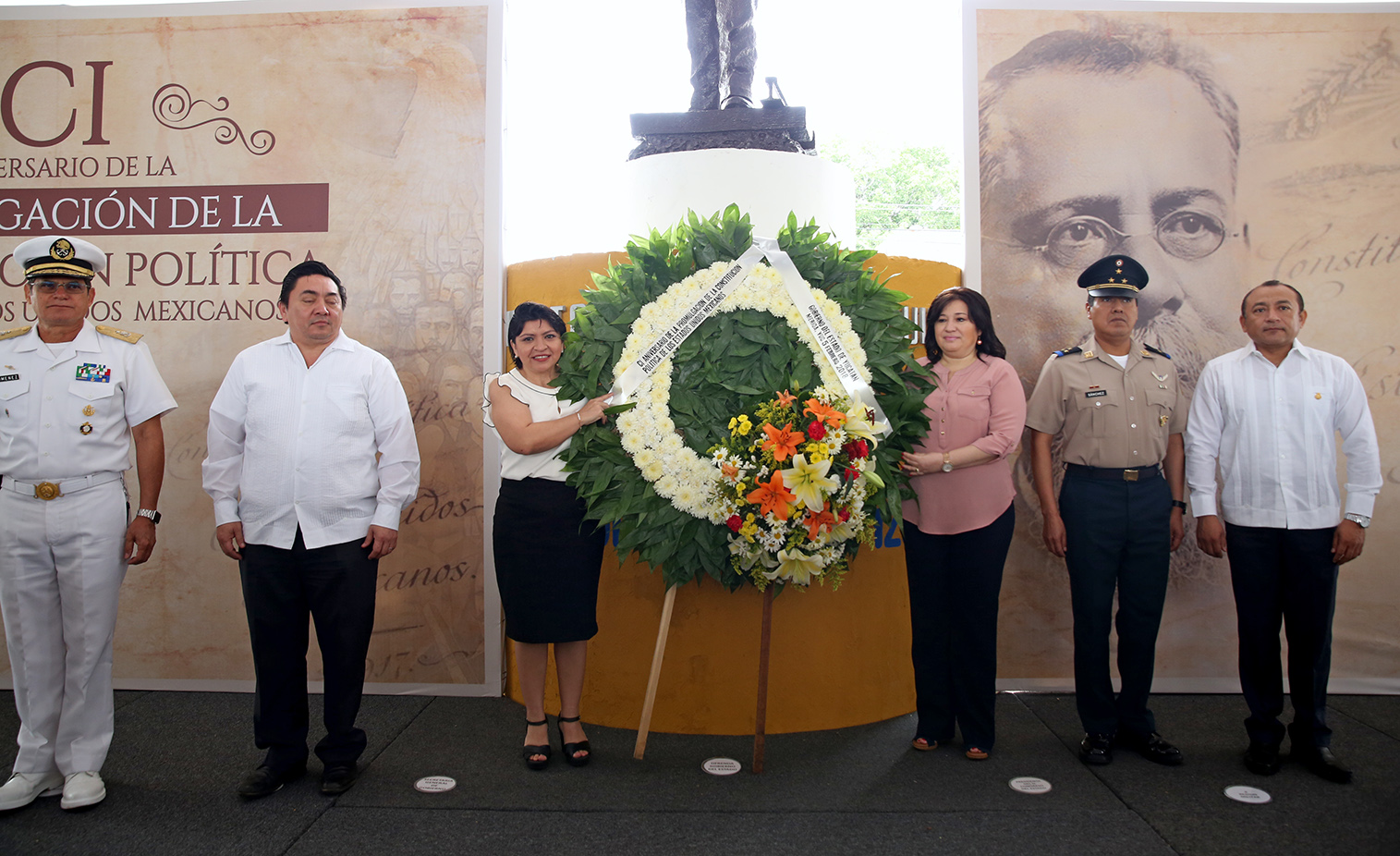 En representación del titular del Poder Ejecutivo, Rolando Zapata Bello, la secretaria General de Gobierno, Martha Góngora Sánchez, encabezó la ceremonia cívica celebrada en el parque Artículo 123 de Mérida, cuya oradora fue la diputada María del Rosario Díaz Góngora.