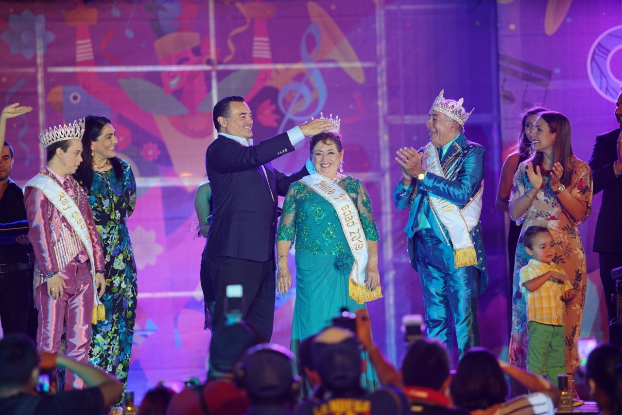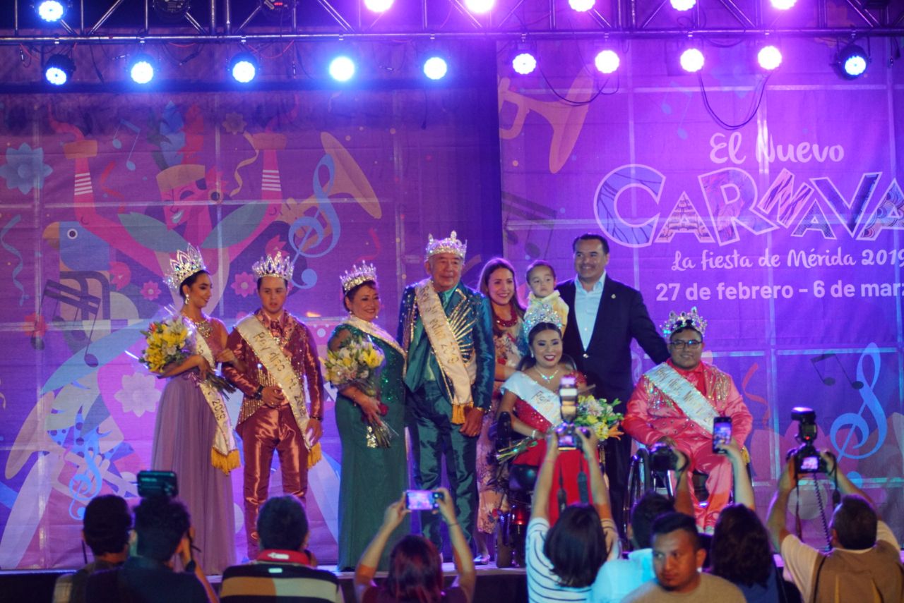 Mérida, 17 de febrero de 2019.—La alegría y la diversión de "El Nuevo Carnaval, La Fiesta de Mérida 2019" fueron colofón en la coronación de los reyes de la tercera edad, reyes con discapacidad motriz y reyes con discapacidad intelectual, que marcó el inicio de una de las fiestas más importantes y de mayor tradición en Mérida.