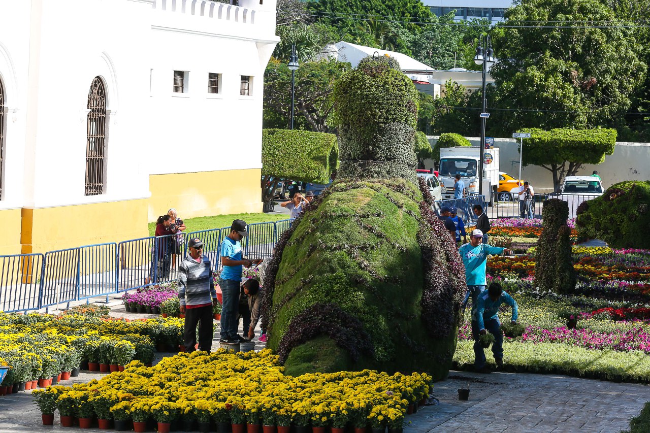 Como parte de su compromiso con el cuidado del medioambiente, el alcalde Renán Barrera Concha incluyó en esta ocasión un mensaje de respeto y cuidado hacia nuestra flora y fauna tradicionales, de manera que entre las esculturas realizadas con plantas y flores habrá jaguares, venados, pavos de monte y una serpiente.