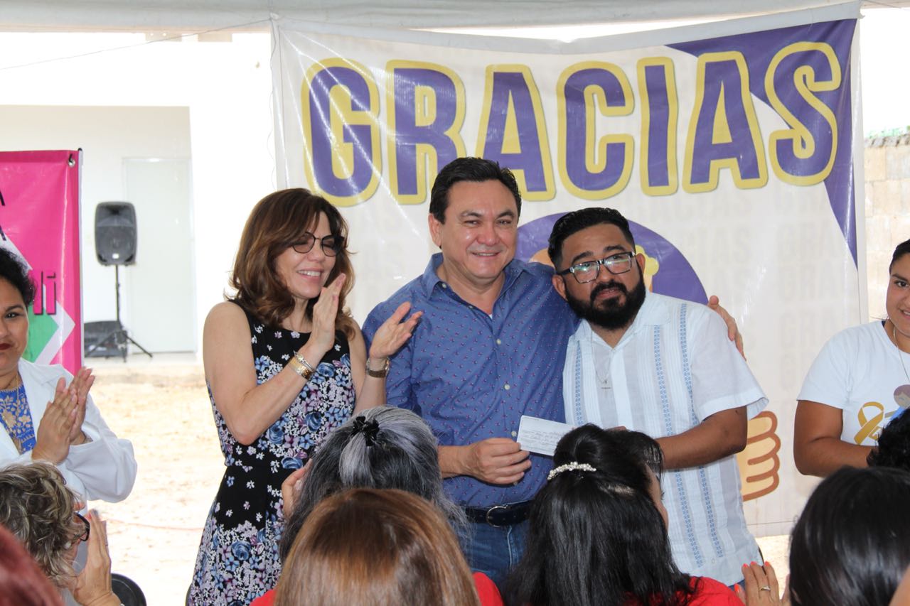 Jesús Antonio Rivero González recibió el cheque de 86 mil 253 pesos, de manos de Liborio Vidal ante la presencia de padres y los niños que reciben la atención y apoyo de esta organización de la sociedad civil.