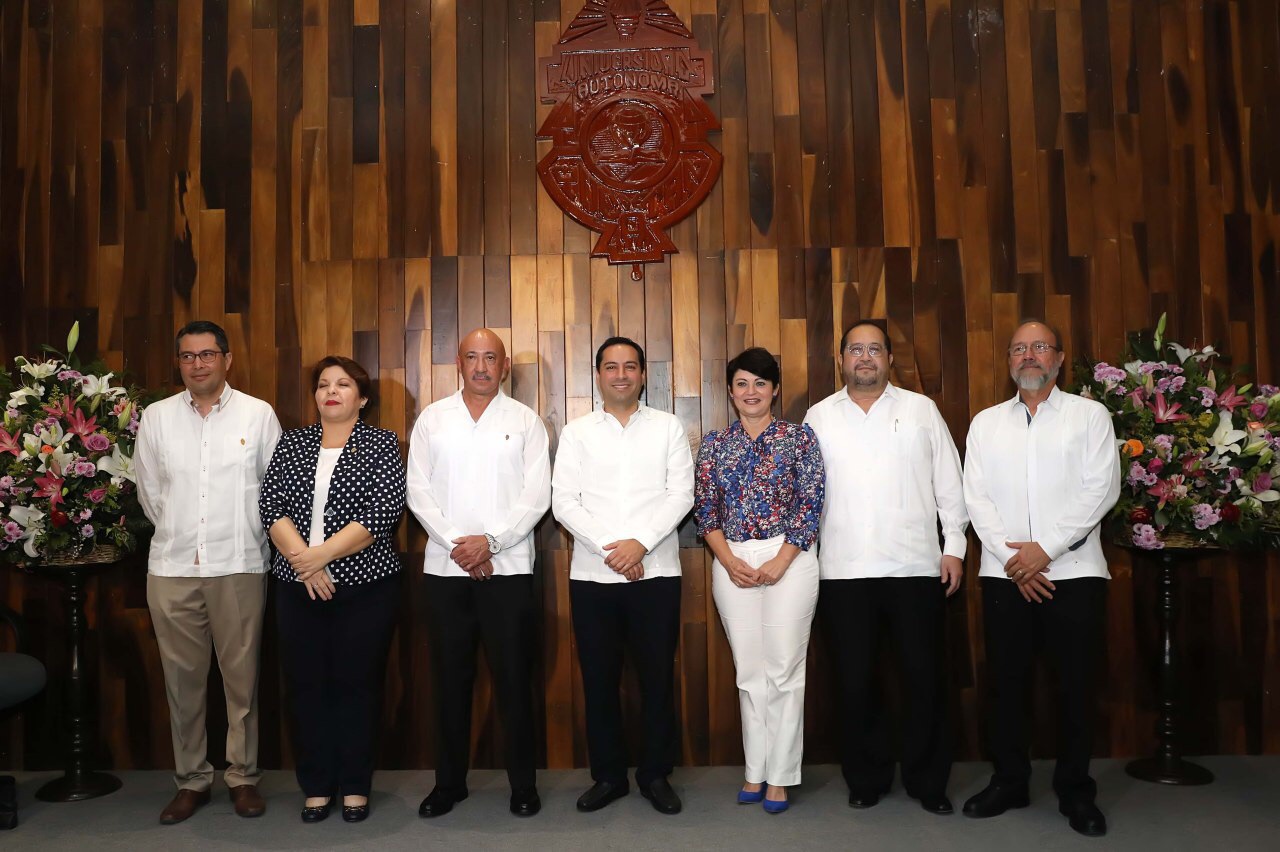 En su primera actividad del año que comienza, el mandatario estatal atestiguó, junto con autoridades civiles y militares, el mensaje que dirigió el rector de la UADY luego de asumir de nueva cuenta el cargo, en el que definió los ejes que articularán el rumbo de la institución para responder a los retos que imponen los cambios sociales, económicos, políticos y culturales de este siglo.