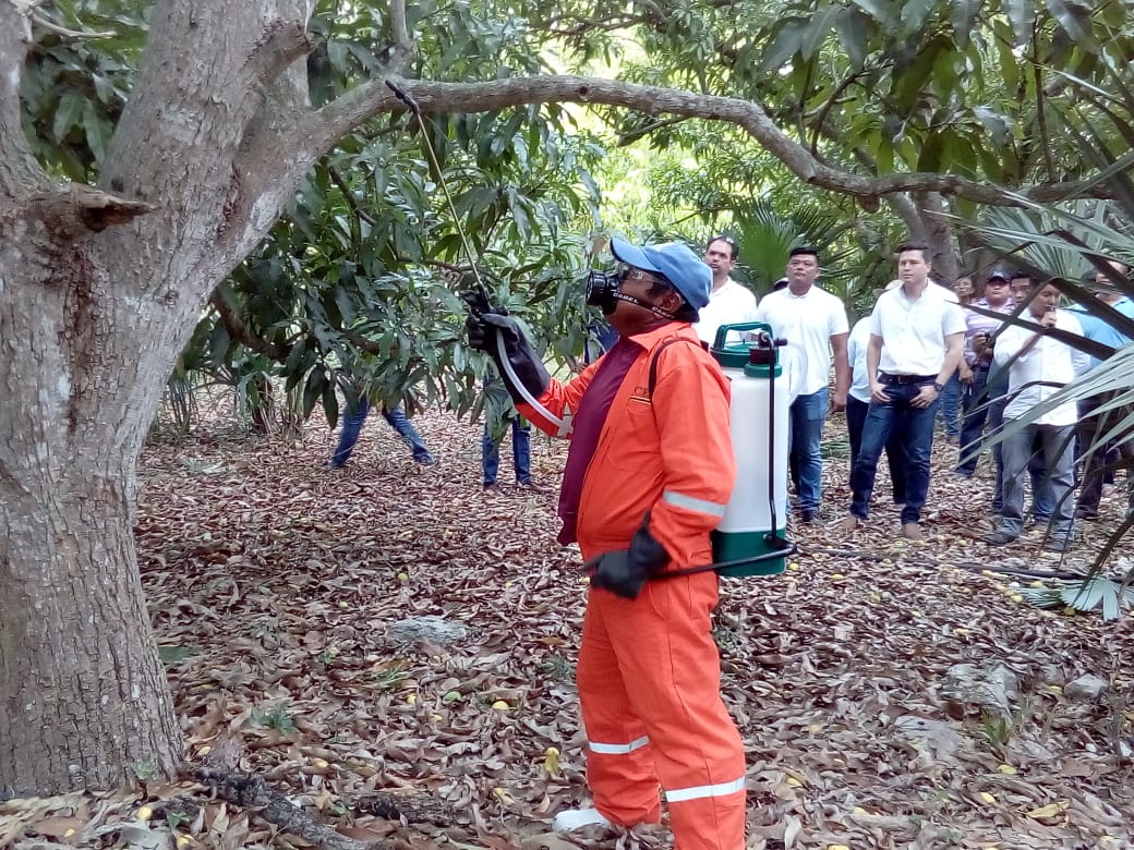 Esta campaña inició en una unidad productiva de mango, donde se dieron cita el coordinador del Cesvy para la zona poniente, Eric Sánchez, y el director de Desarrollo Rural de la comuna, Pedro Isaac Dzul Chan, así como productores y funcionarios tanto estatales como municipales.