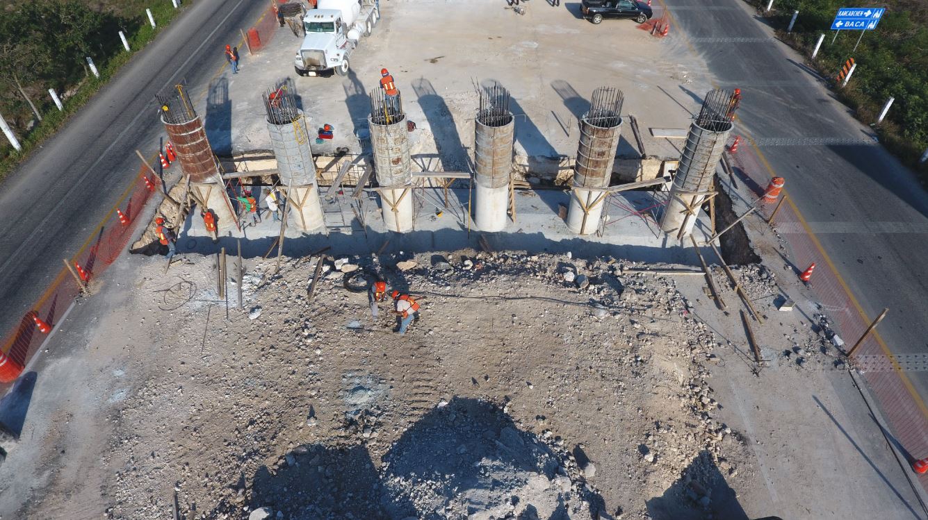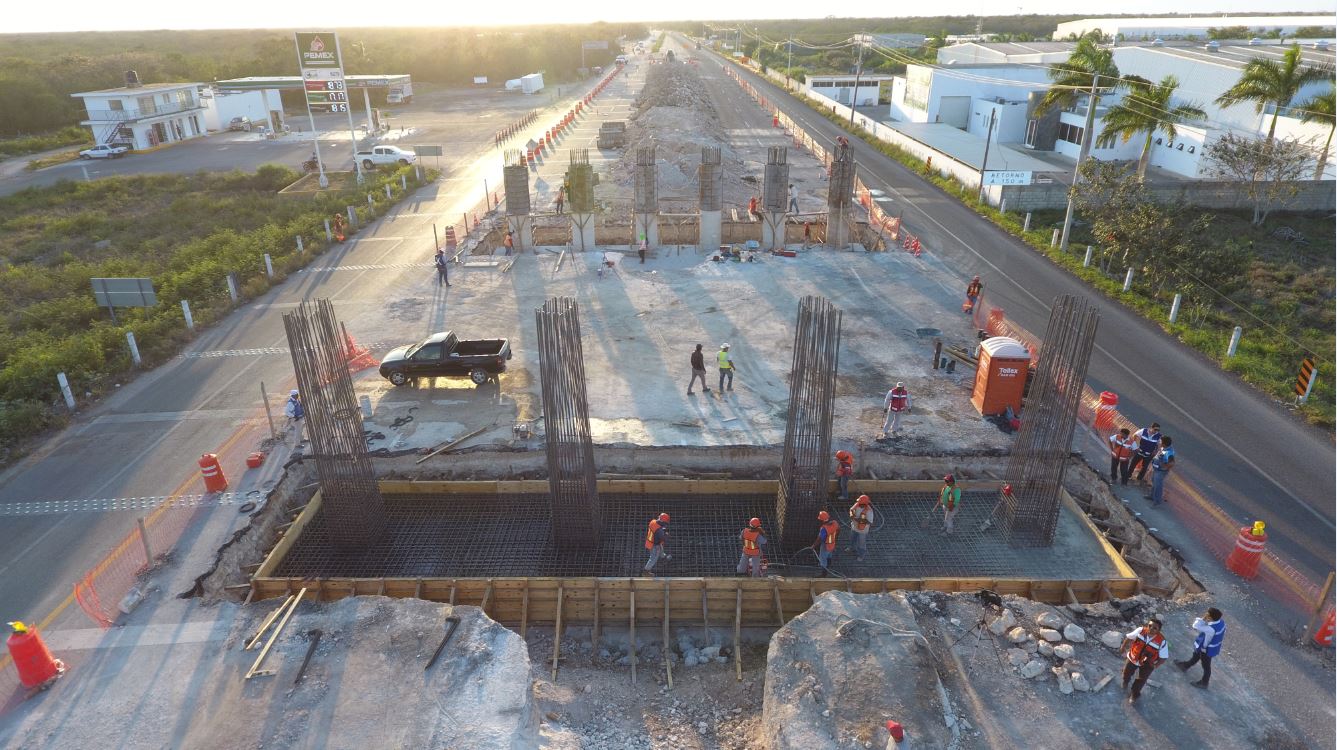 A la fecha se ha llevado a cabo la construcción de 5 zapatas (de un total de 8) y se han construido 16 columnas (de un total de 36) de concreto reforzado. Actualmente se trabaja en la formación de las rampas de acceso a la estructura y en las vialidades laterales.