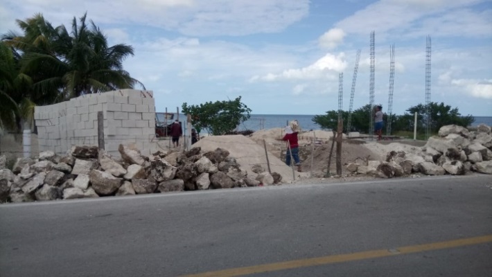 Por otra parte, en la localidad de Chabihau, Municipio de Yucatán, se detectó en visita de inspección realizada el 30 de noviembre pasado, obras y actividades de construcción de un desarrollo inmobiliario en una superficie de 893 m2 inmersa en ecosistema costero, obras consistentes en cimentaciones de mampostería a base de piedra, concreto y armados de fierro, así como una bodega de materiales de construcción, a base de postes de madera con techo y paredes de lámina de cartón.