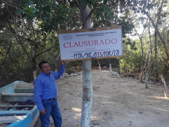 La Procuraduría Federal de Protección al Ambiente (PROFEPA) clausuró de manera total temporal las obras y actividades realizadas en mil 91 metros cuadrados, correspondiendo 198 metros cuadrados (m2) a un predio dentro de la Reserva Estatal Ciénagas y Manglares de la Costa Norte de Yucatán, y 893 m2 a otro predio de la localidad de Chabihau, Municipio de Yobaín, obras y actividades que se realizaban sin contar con la autorización correspondiente de la Secretaría de Medio Ambiente y Recursos Naturales (SEMARNAT) y afectaron vegetación forestal.