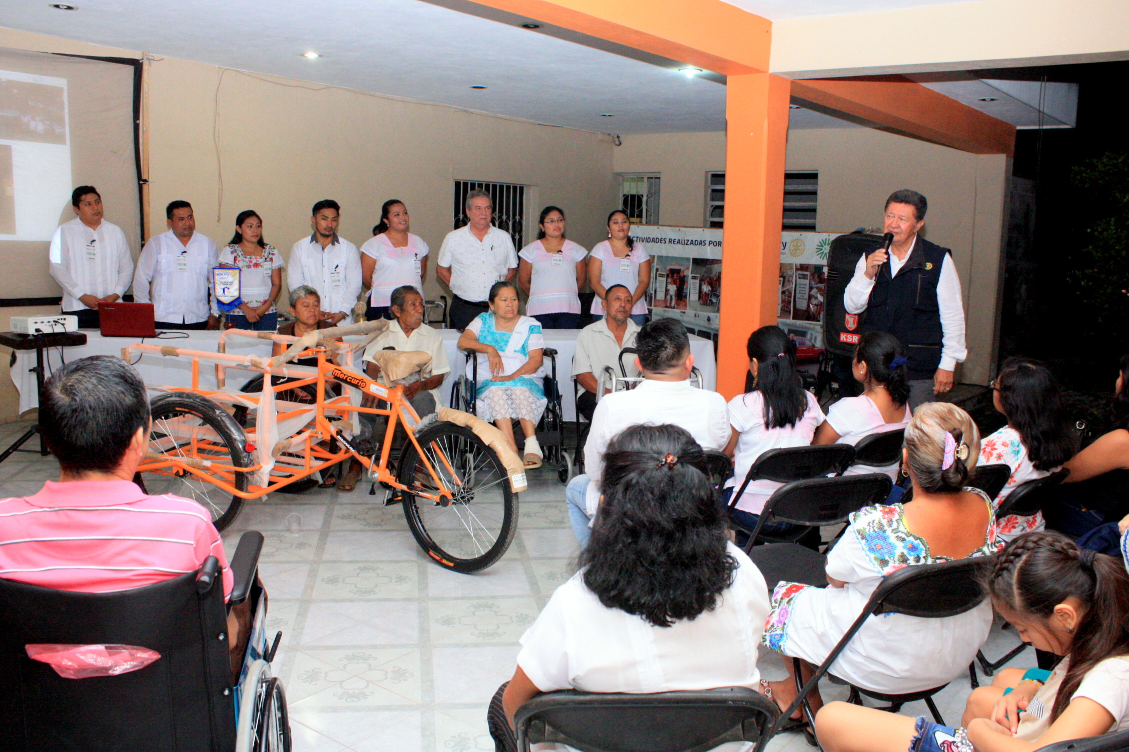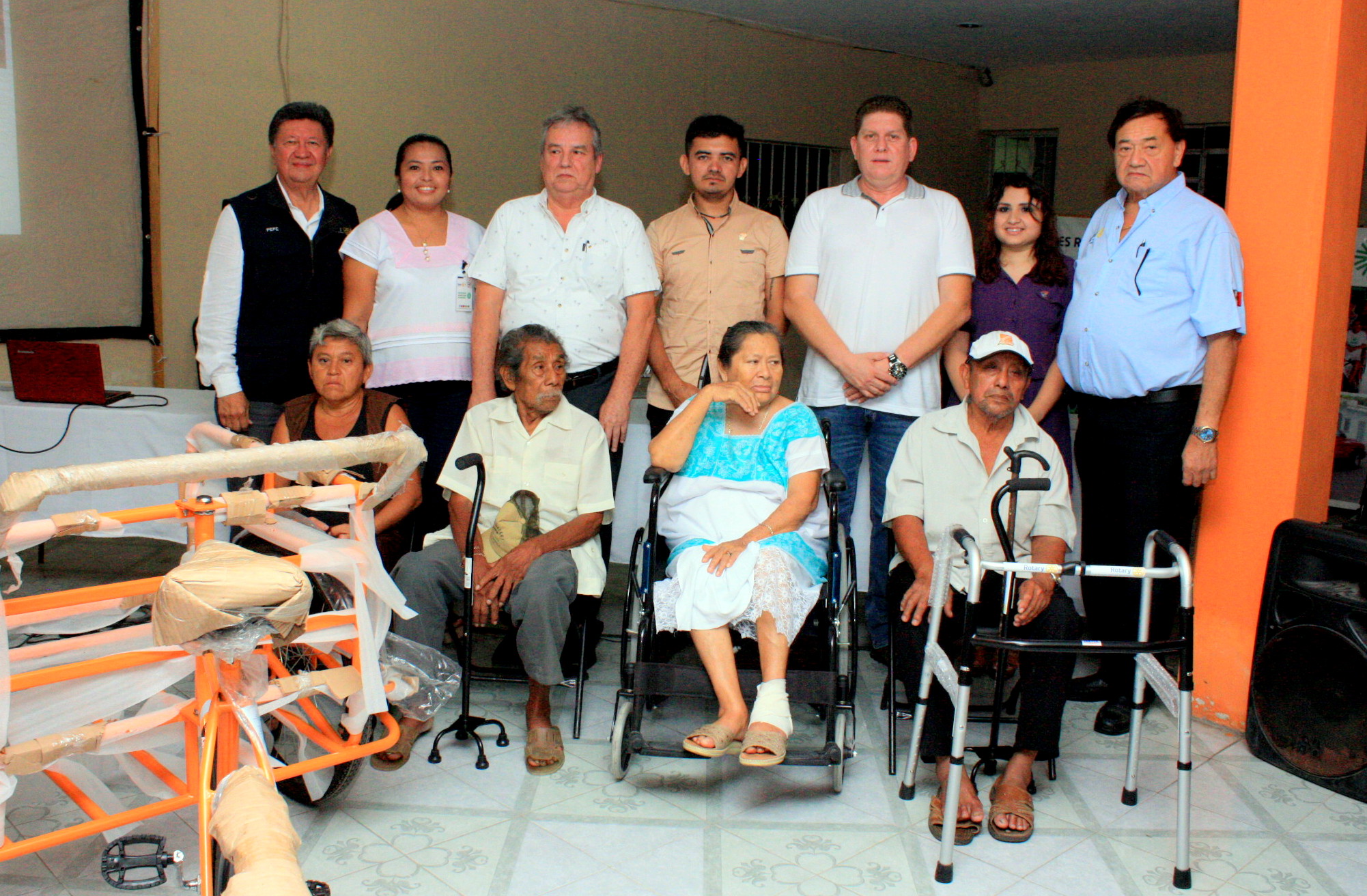 El día de ayer en Hunucma, el club Rotario Mérida Montejo entrego a través del Grupo de Fomento Comunitario de Rotary, 3 sillas de ruedas, 4 bastones, 4 burritos y un Triciclo de trabajo y transporte, fue la Sra. Margarita Torres Mex quien recibiera de manos del Presidente del Club Rotario el Ing. Juan A Hinojosa Hinojosa su triciclo que solicitara ante la necesidad de transportarse.