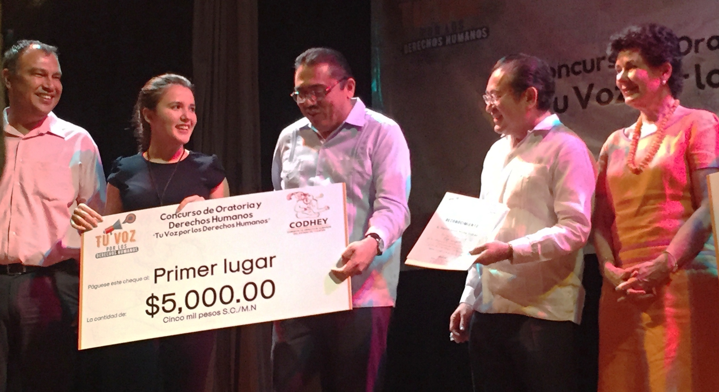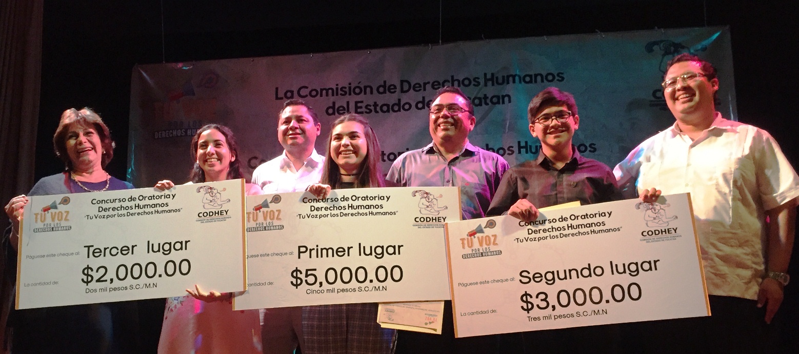 Natalia Fernández Rosel del Instituto Godwin y Danna Ivette Acuña Beltrán de la Facultad de Contaduría y Administración de la Universidad Autónoma de Yucatán (UADY), obtuvieron el primer lugar del Concurso de Oratoria y Derechos Humanos “Tu voz por los derechos humanos” en la categoría bachillerato y licenciatura, respectivamente.