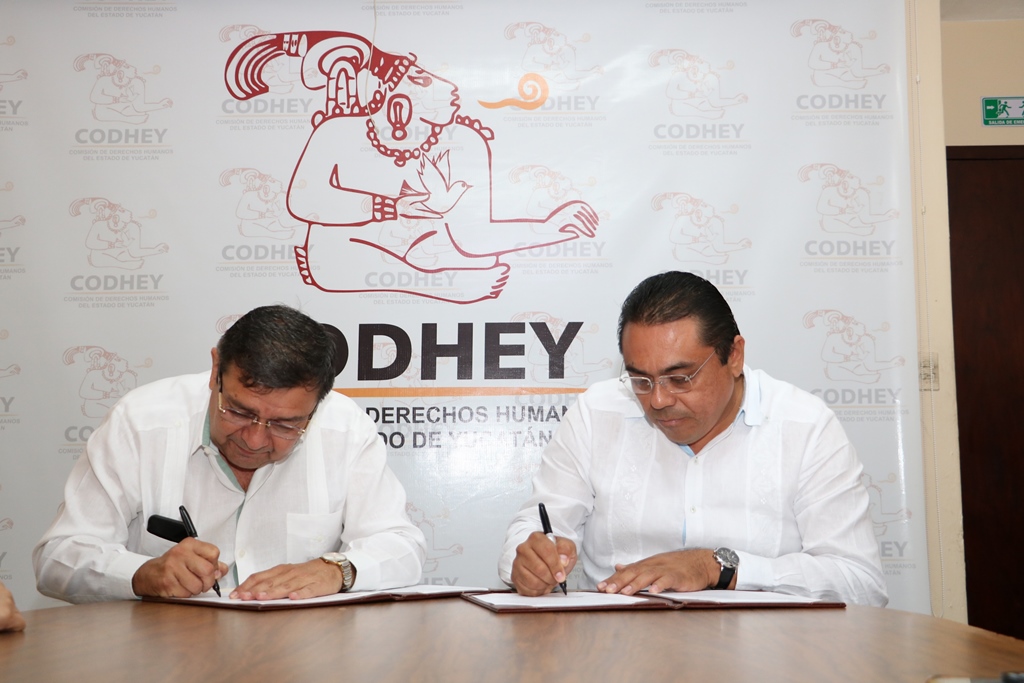 Por la CODHEY, firmó el Secretario Ejecutivo y encargado de la Presidencia, Miguel Óscar Sabido Santana y por el TEEY, el Magistrado Presidente, Fernando Javier Bolio Vales; asistieron como testigos, los magistrados, Lissette Guadalupe Cetz Canché y Javier Armando Valdez Morales.