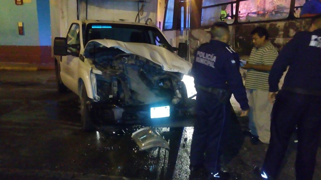 La Policía Municipal de Mérida tomó conocimiento hoy a las 5:40 horas de un hecho de tránsito en la calle 68 por 63 en el que estuvieron involucrados el autobús ruta “Juan Pablo II” placas 701258-Y y el camioneta Ford placas YT-1897-A, conducidos por Jose A.C. y Pedro F.C., respectivamente.