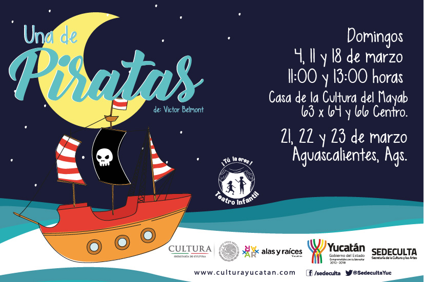 Los planes de tres infantes para devolver la armonía a una isla asolada por un temible bucanero desencadenarán una serie de educativos enredos durante la obra Una de piratas, con la que Yucatán participará en el Encuentro Nacional de Teatro hecho por niños y niñas 2018.
