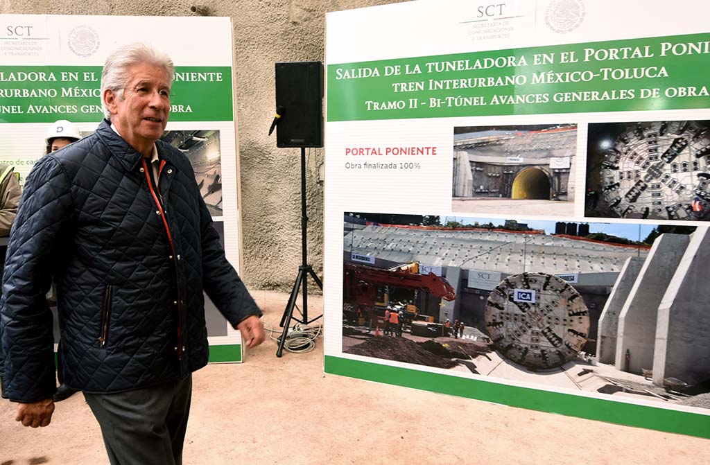 El secretario de Comunicaciones y Transportes atestiguó hoy la conclusión de los trabajos de la tuneladora “La Mexiquense” utilizada en la construcción del Tren Interurbano México-Toluca, máquina que junto con la llamada “La Marquesa” construyeron los dos túneles que suman 9.4 kilómetros en el cerro de Las Tres Cruces.