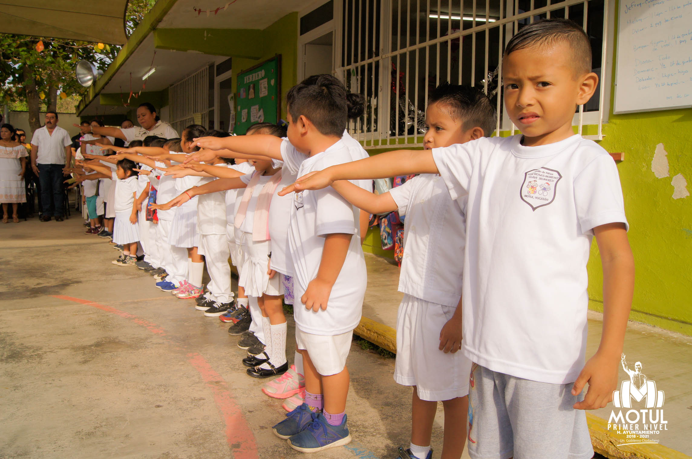 Motul, Yucatán, 19 de febrero.- En el marco conmemorativo del día del ejército mexicano, el jardín de niños, José Rosas Moreno, en coordinación con la dirección de educación del ayuntamiento de Motul realizaron un homenaje en el cual estuvo como invitado el Presidente municipal, Roger Aguilar Arroyo y su distinguida esposa, Kelly Sosa Lugo.