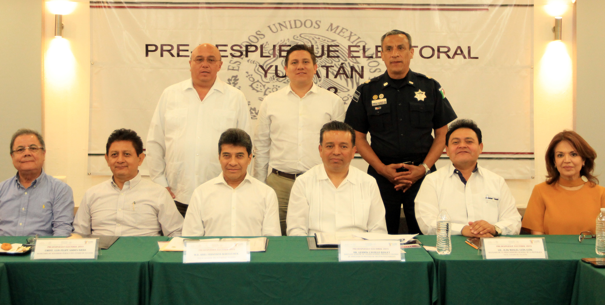También el vocal Ejecutivo de la Junta Local del Instituto Nacional Electoral (INE), Fernando Balmes Pérez; el coordinador Estatal de la Policía Federal (PF), comisario Julio César Martínez Arredondo; el delegado de la Secretaría de Gobernación (SEGOB) en Yucatán, Rubén Valdez Ceh y el secretario Ejecutivo del Consejo Estatal de Seguridad Pública, Carlos Martín Pacheco Medina.