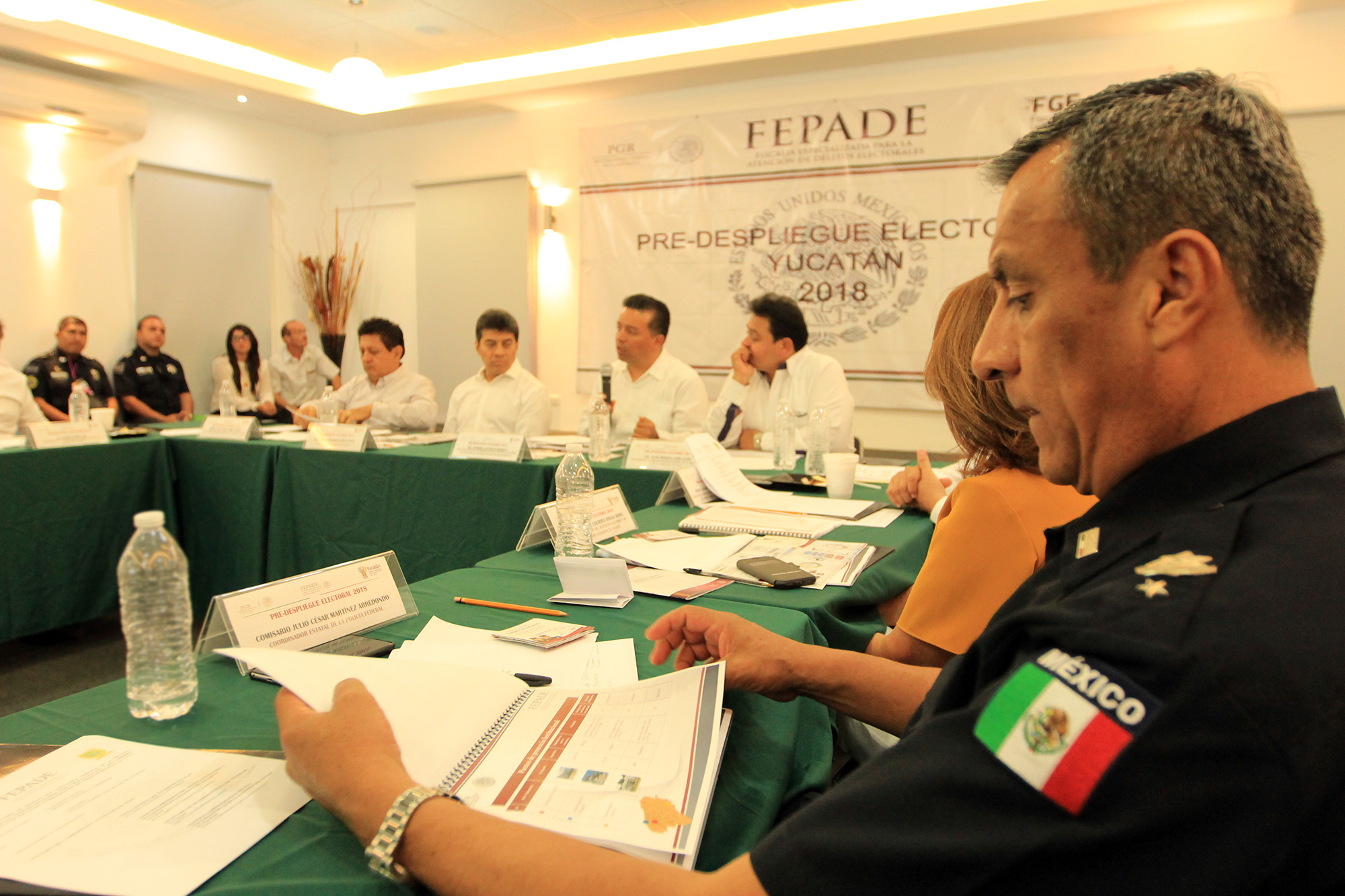 La Fiscalía General del Estado (FGE) mediante la Vicefiscalía Especializada en Delitos Electorales y la Fiscalía Especializada Para la Atención de Delitos Electorales (FEPADE) de la Procuraduría General de la República (PGR) dieron a conocer los acuerdos establecidos en reunión de trabajo referentes al pre despliegue de autoridades estatales y federales en Yucatán, con motivo de la próxima jornada electoral del 1 de julio en la entidad.