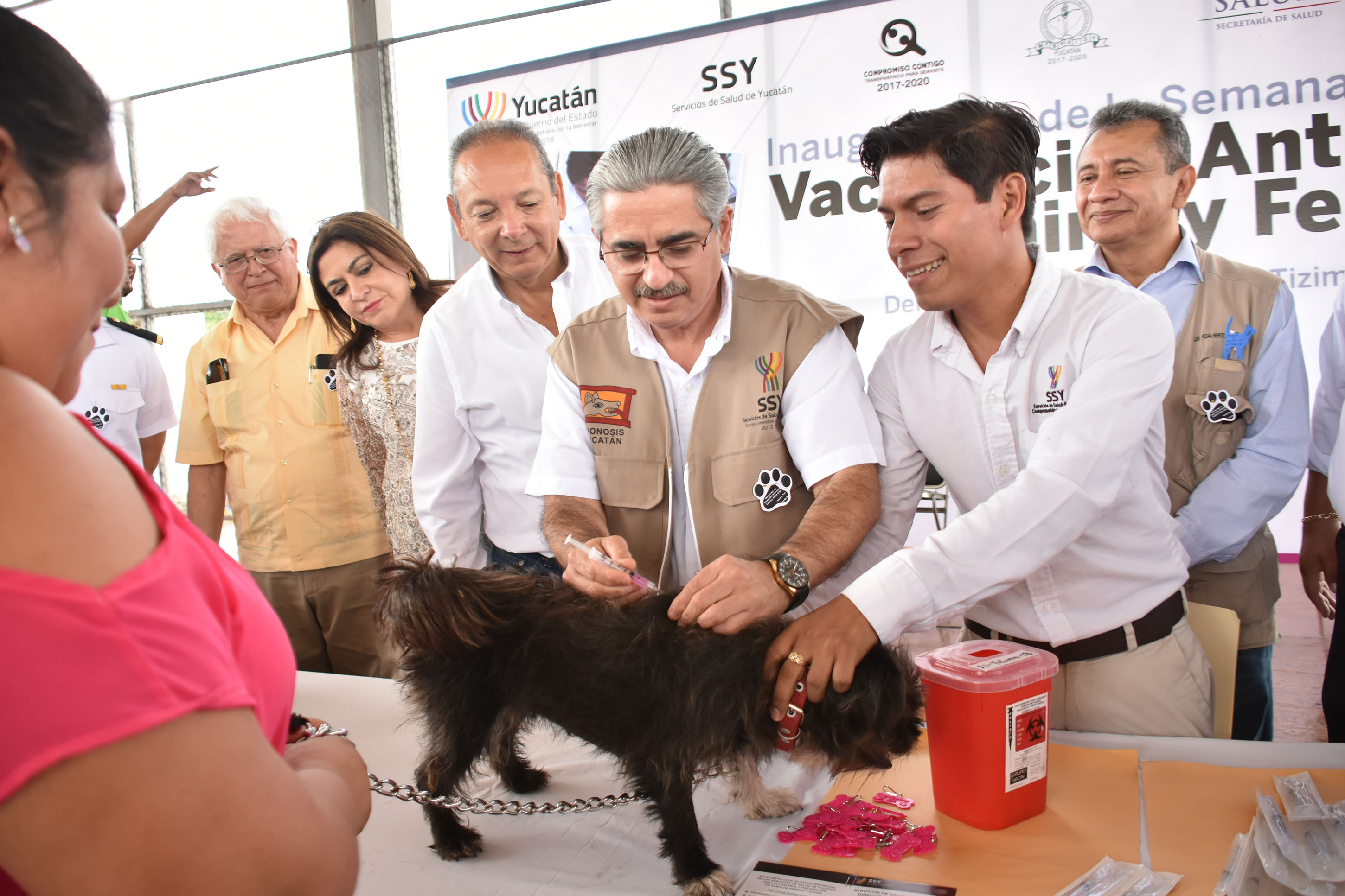 Tizimín, Yucatán, 11 de marzo de 2018.- Con la meta de aplicar 331 mil 979 dosis de biológicos a igual número de animales del 11 al 18 del presente, la Secretaría de Salud de Salud de Yucatán (SSY) puso en marcha en este municipio los trabajos de la primera Semana Nacional de Vacunación Antirrábica de Perros y Gatos 2018.