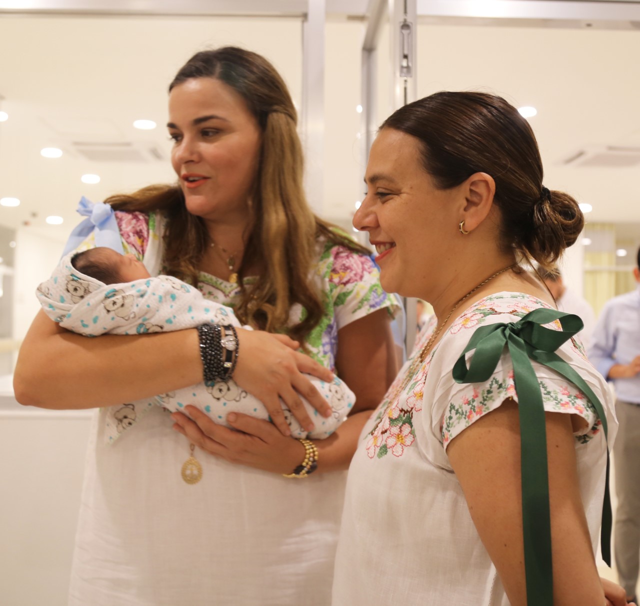 Con mucha alegría, María Cristina Castillo Espinosa, directora del Sistema para el Desarrollo Integral de la Familia (DIF) Yucatán, compartió la emoción de María Reyna Belén Albornoz Patrón, quien dio a luz a su cuarto hijo en el Hospital Materno Infantil de Mérida, en la víspera de la conmemoración del Día de las Madres.