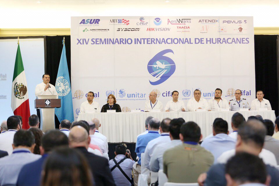 Celebró que Mérida sea sede del XVI Seminario Internacional de Huracanes, espacio donde el Centro Internacional de Formación para Autoridades y Líderes locales en coordinación con el Instituto de las Naciones Unidas para la Formación y la Investigación (Cifal y Unitar, respectivamente), trabajan y comparten experiencias meteorológicas en este municipio.