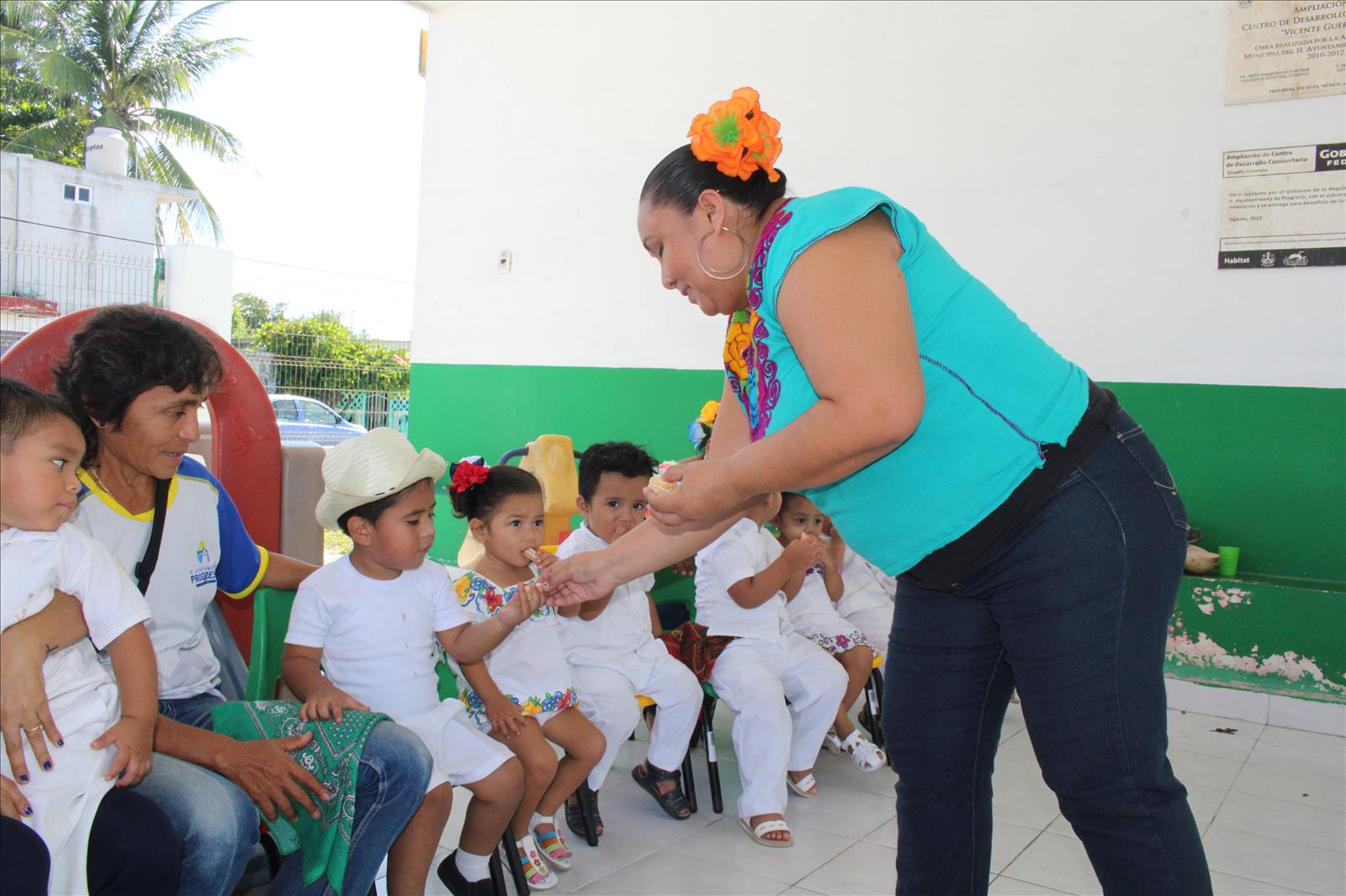 PROGRESO.- Los pequeños del Centro de Atención Infantil pasaron una divertida mañana durante su celebración del Hanal Pixán que tuvieron acompañados de sus docentes y autoridades municipales.