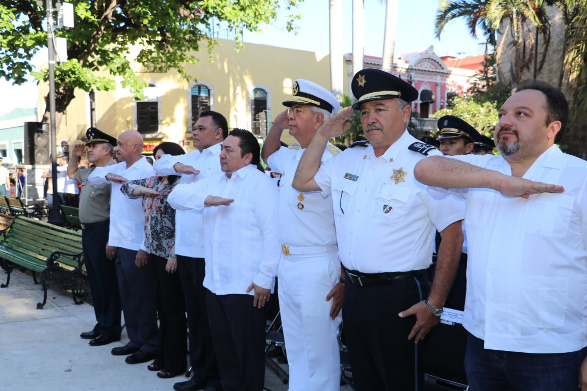 Posteriormente los representantes del mando Militar y Naval, Ayuntamiento de Mérida, Rector de la UADY, representantes de los poderes Legislativo y Judicial y Gobierno del estado depositaron ofrendas florales y montaron guardia de honor al pie del monumento del general Manuel Cepeda Peraza.