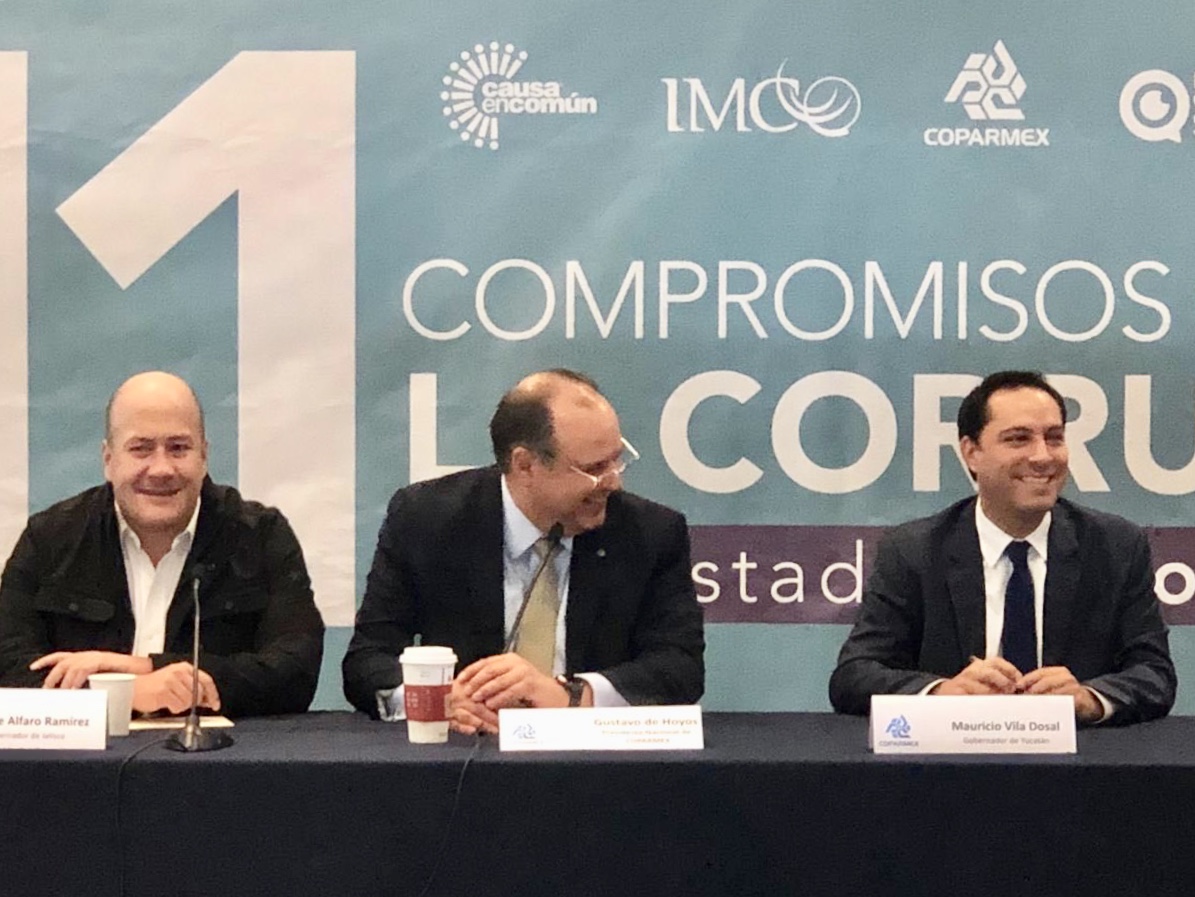 Ciudad de México, 13 de febrero de 2019.- Al participar en la mesa técnica de seguimiento a los “11 Compromisos Contra la Corrupción- Coparmex”, el Gobernador Mauricio Vila Dosal reiteró que, como desde el día uno, en su administración es prioridad el combate frontal a esta práctica y la impunidad, así como hacer realidad mejores acciones en materia de transparencia y rendición de cuentas.