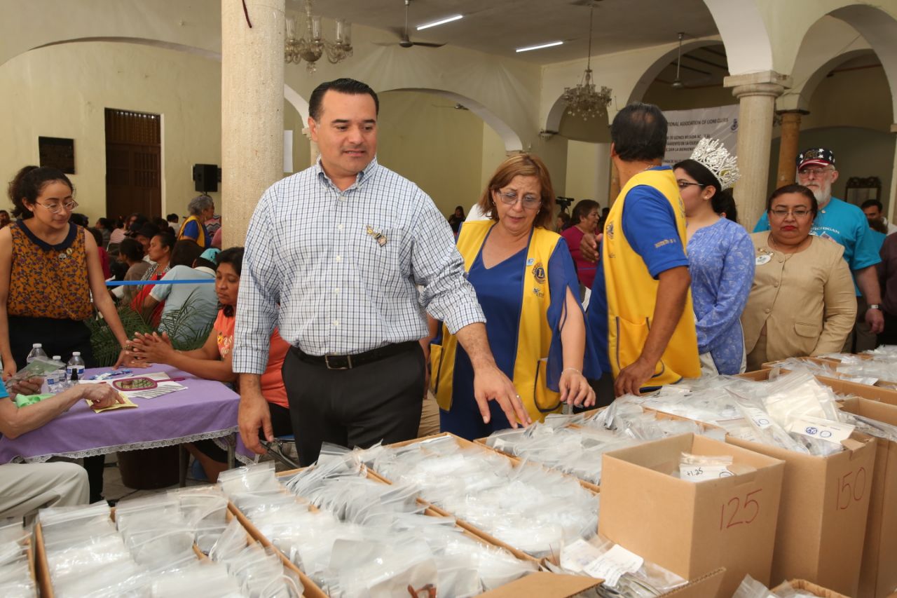 Ante beneficiarios, representantes del club de Leones y funcionarios públicos, Renán Barrera remarcó que en este caso la unión de esfuerzos entre gobierno y sociedad permite a las personas de escasos recursos mejorar su calidad de vida.