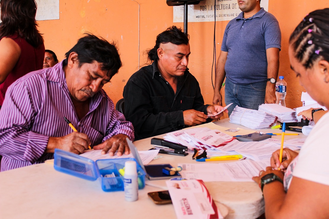 Motul, Yucatán a 25 de abril de 2019.- Con el objetivo de contribuir con el bienestar de las mujeres y los hombres del campo e impulsar el desarrollo rural, el Presidente Municipal de Motul, Roger Aguilar Arroyo acompañado de la Delegada Regional del Gobierno Federal, Mariana Cruz Pool realizaron la entrega de las tarjetas bienestar del programa federal “Sembrando vidas”.
