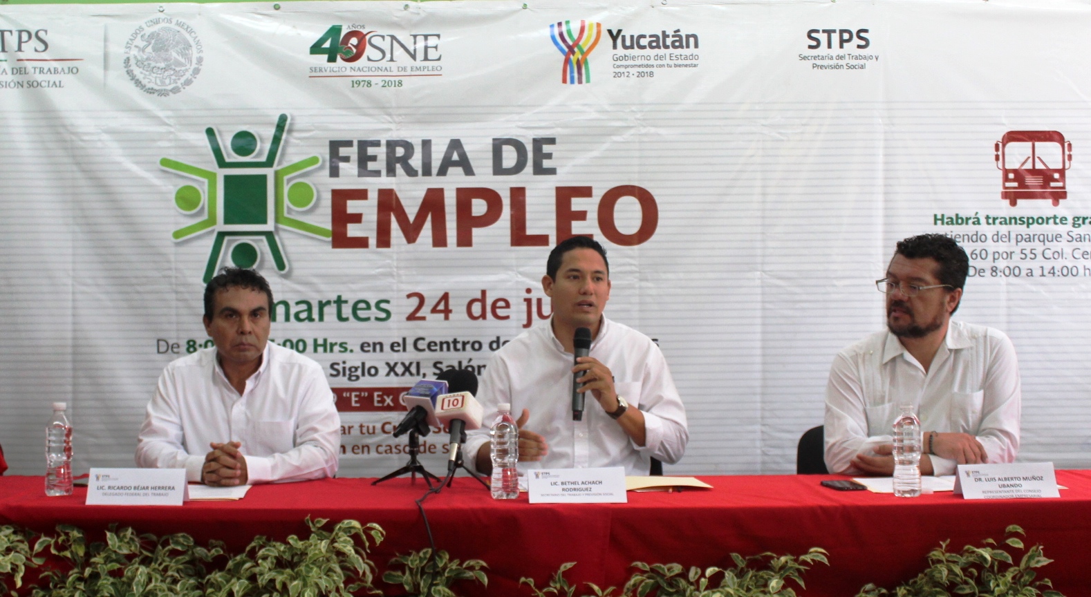 Mérida, Yucatán, 17 de julio de 2018.- Con el objetivo de continuar manteniendo a Yucatán entre las entidades con menor índice de desempleo a nivel nacional, poco más de mil plazas laborales serán ofertadas por 51 empresas en la octava edición de la Feria de Empleo, informó el titular de la Secretaría del Trabajo y Previsión Social (STPS), Bethel Achach Rodríguez.