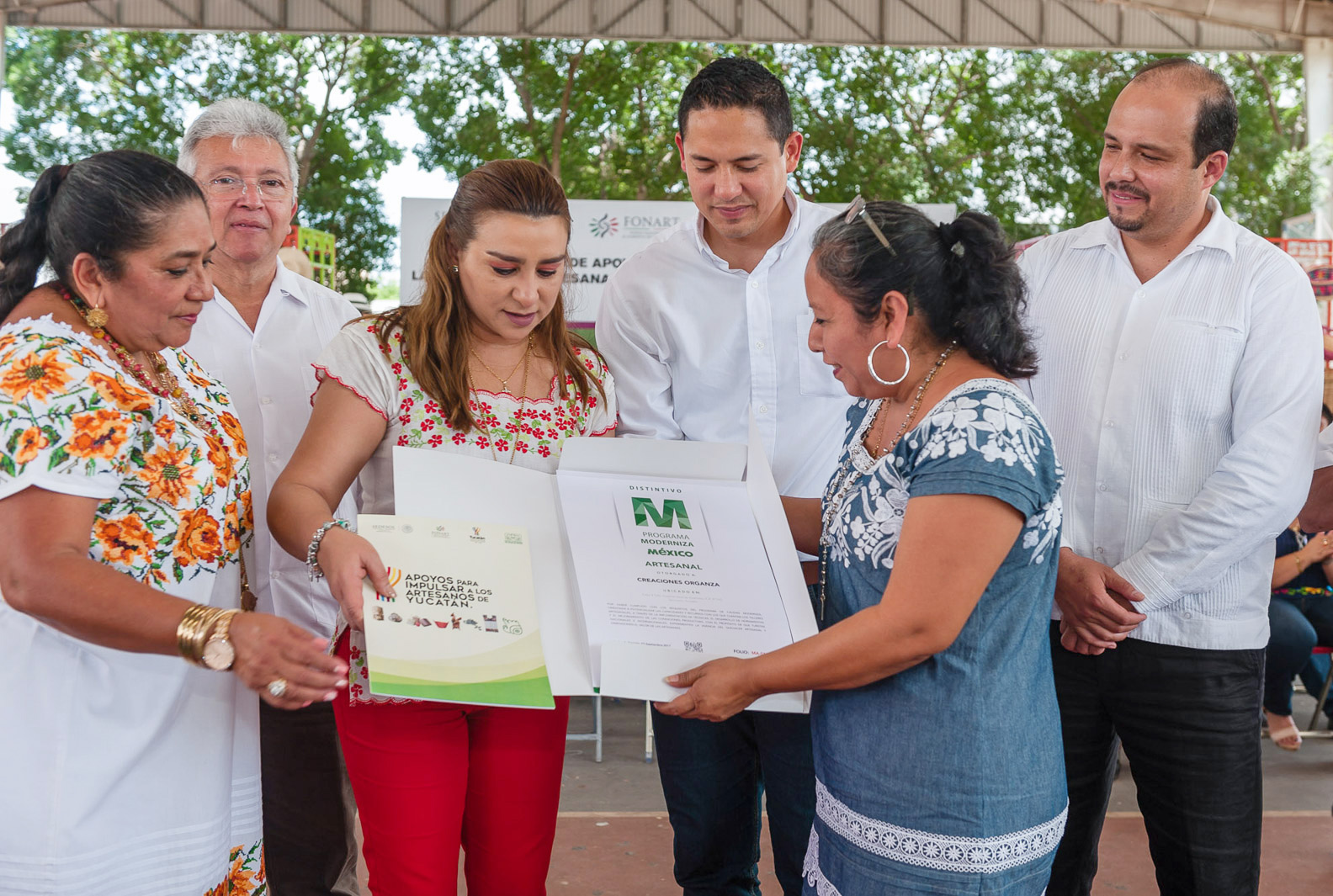 Mérida, Yucatán, 8 de febrero de 2018.- Para garantizar que continúen exaltando la belleza de nuestras tradiciones con su talento, artesanas y artesanos del sur del estado recibieron insumos y certificación, además de respaldo en materia de salud visual, con lo que se impulsa su labor y se fortalece su economía familiar.