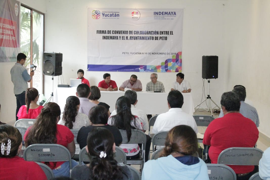 Llevar a todos los rincones de Yucatán los beneficios de los programas que opera el Instituto para el Desarrollo de la Cultura Maya (Indemaya), es el objetivo del convenio de colaboración que recientemente firmaron esta dependencia y el Ayuntamiento de Peto.
