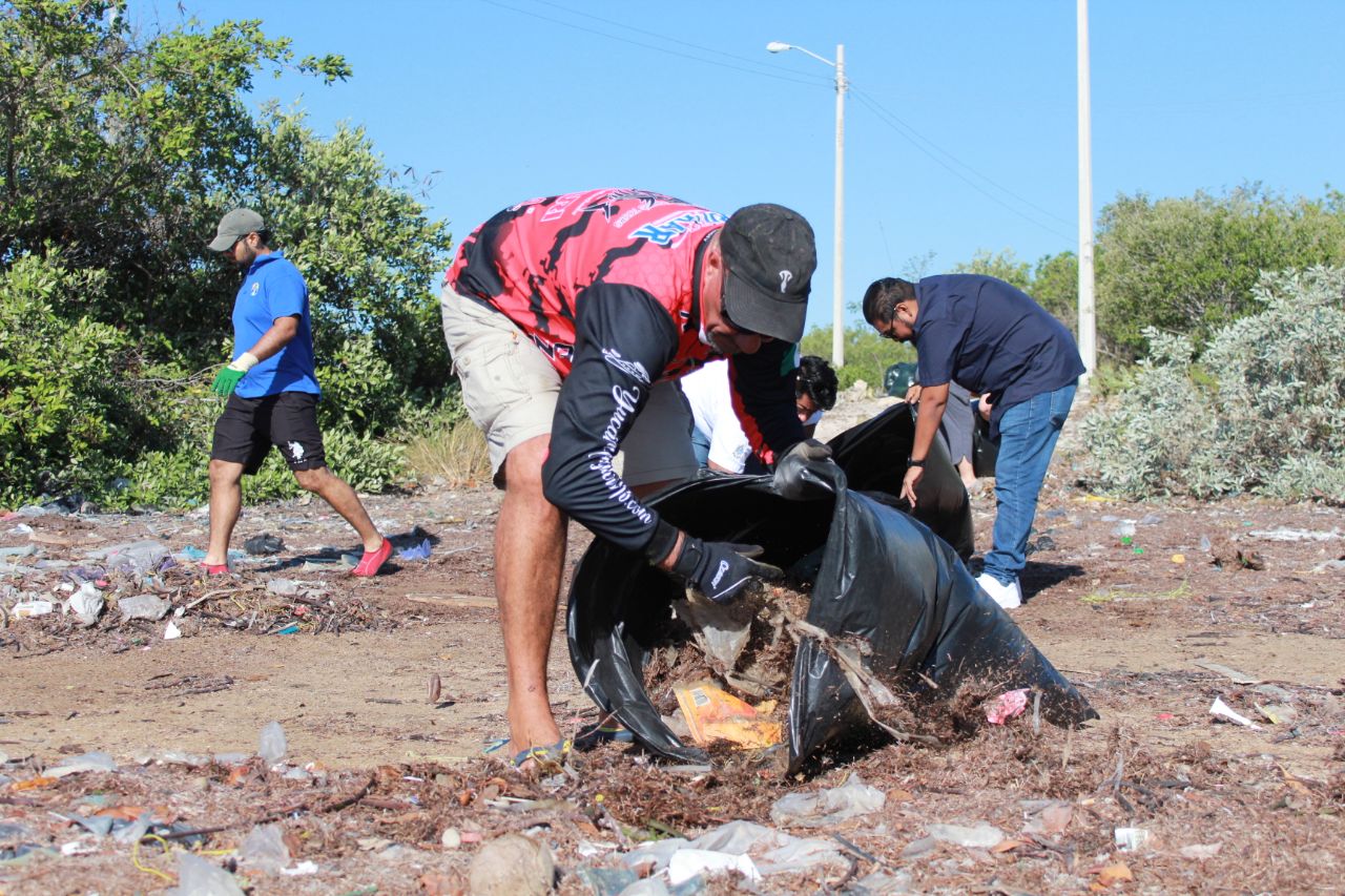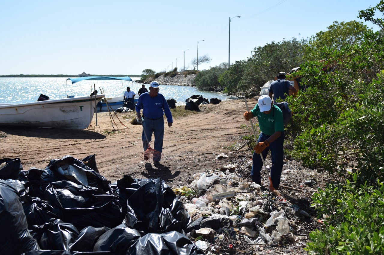 Desde la 8 de la mañana, personal de las dependencias de Turismo y Comercio; Servicios Públicos Municipales y Ecología; Pesca y Desarrollo Agropecuario, así como elementos de la Policía Ecológica, pescadores que forman parte del programa PET, un grupo de residentes extranjeros y la operadora de tours “Yucatán Snook” se dieron cita para sanear dicha zona.