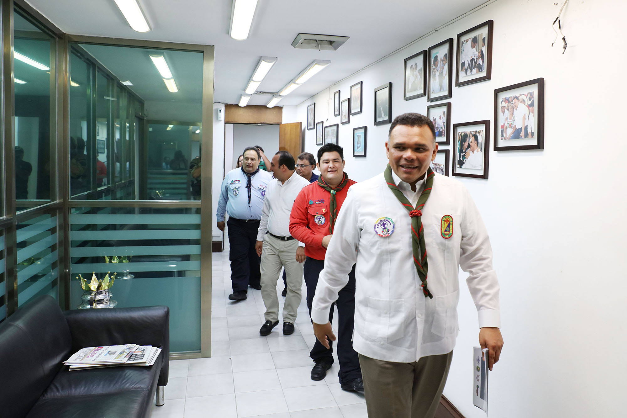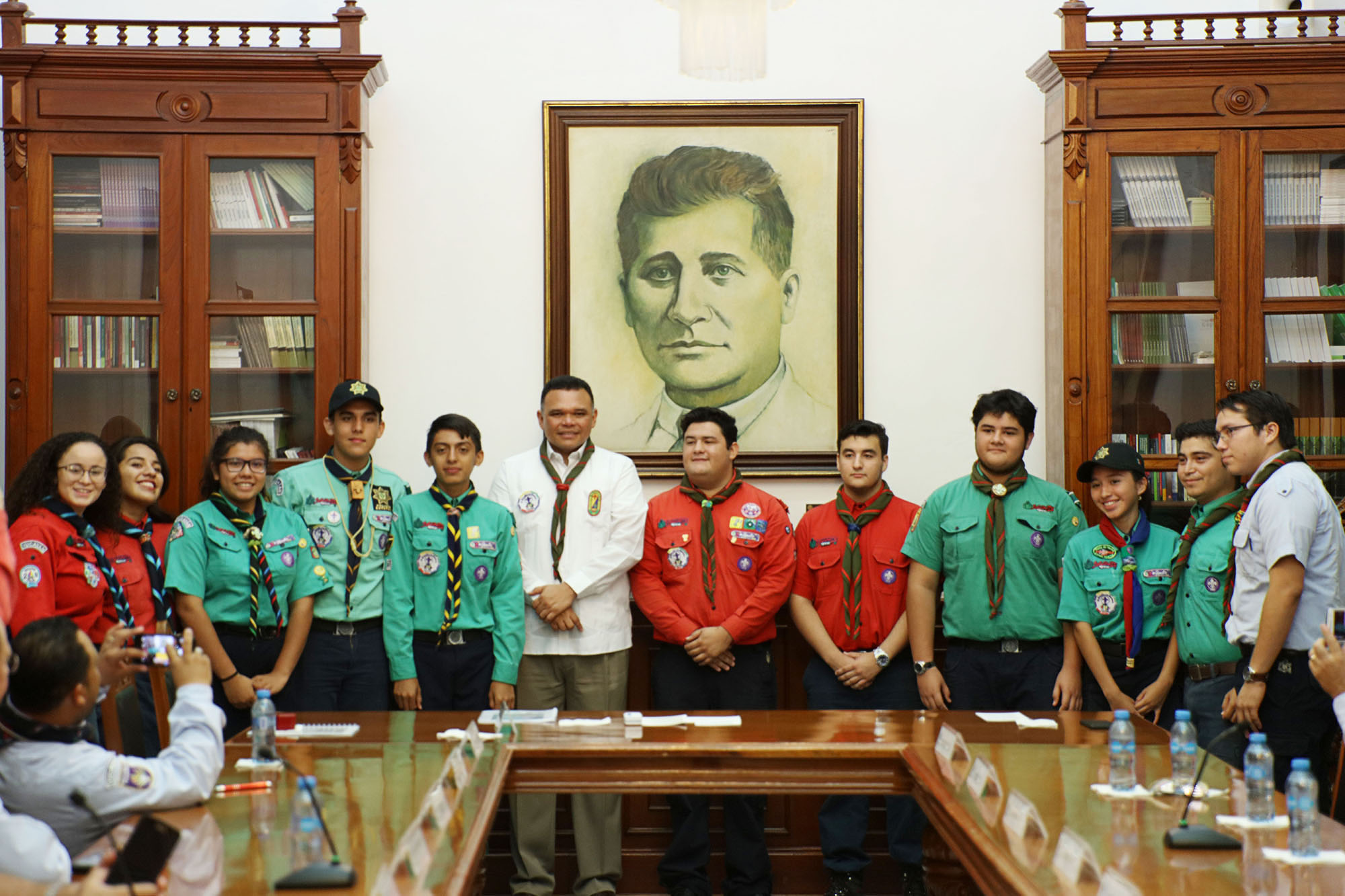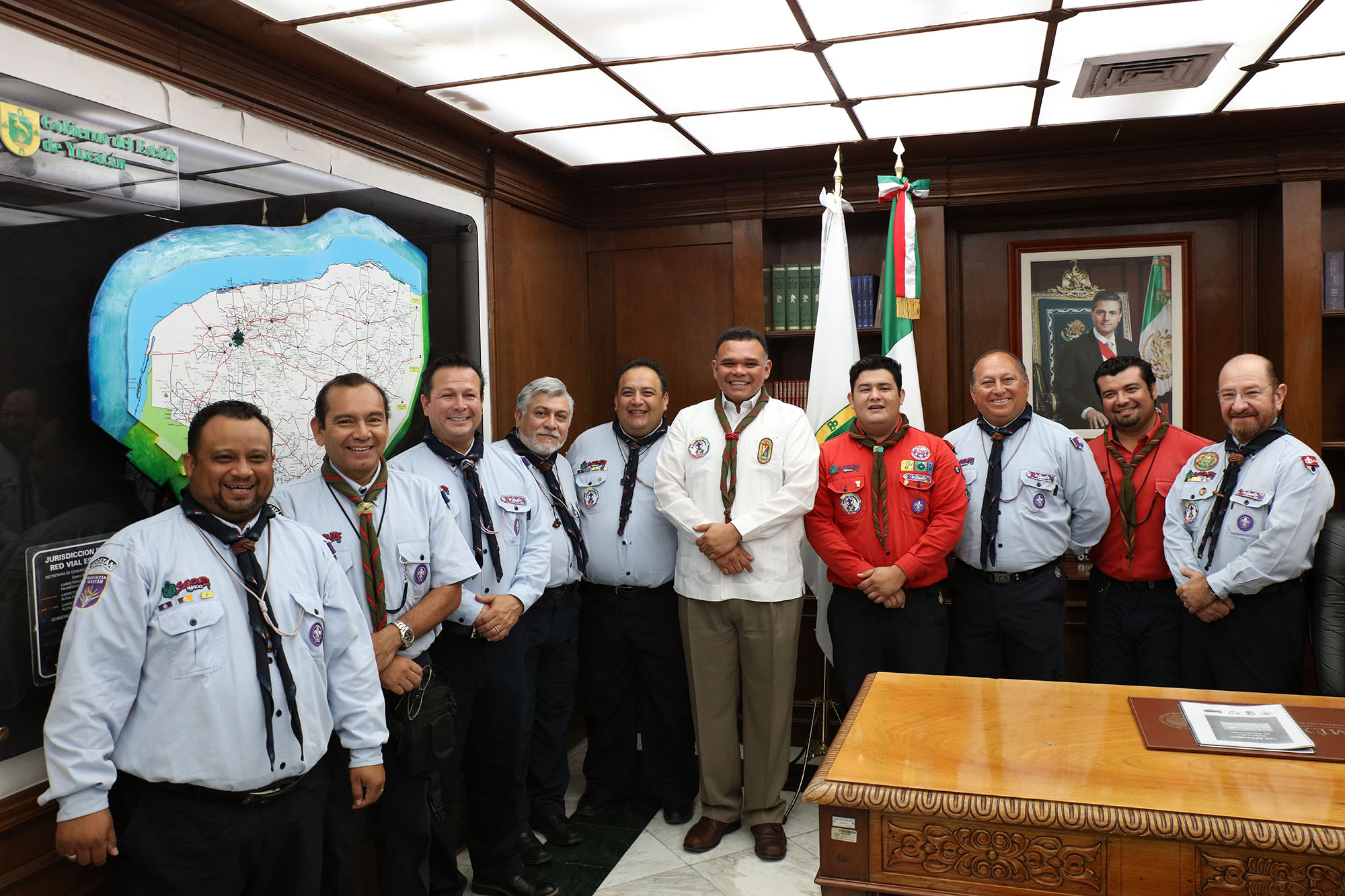 Acompañado del presidente de la Provincia Yucatán de la Asociación de Scouts de México, Raúl Alfonso Rebolledo Alcocer, Zapata Bello reconoció que esta agrupación ha contribuido activamente, mediante su visión de emprendedora y solidaria, así como sus bondades, en todo lo construido durante su administración.