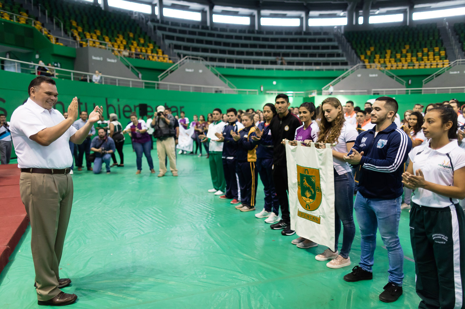 En el Poliforum Zamná de esta ciudad, el Gobernador Rolando Zapata Bello abanderó a la delegación que participará en la justa anual, del 27 de abril al 12 de mayo, y en donde buscará superar el quinto lugar del medallero general que se consiguió el año pasado.