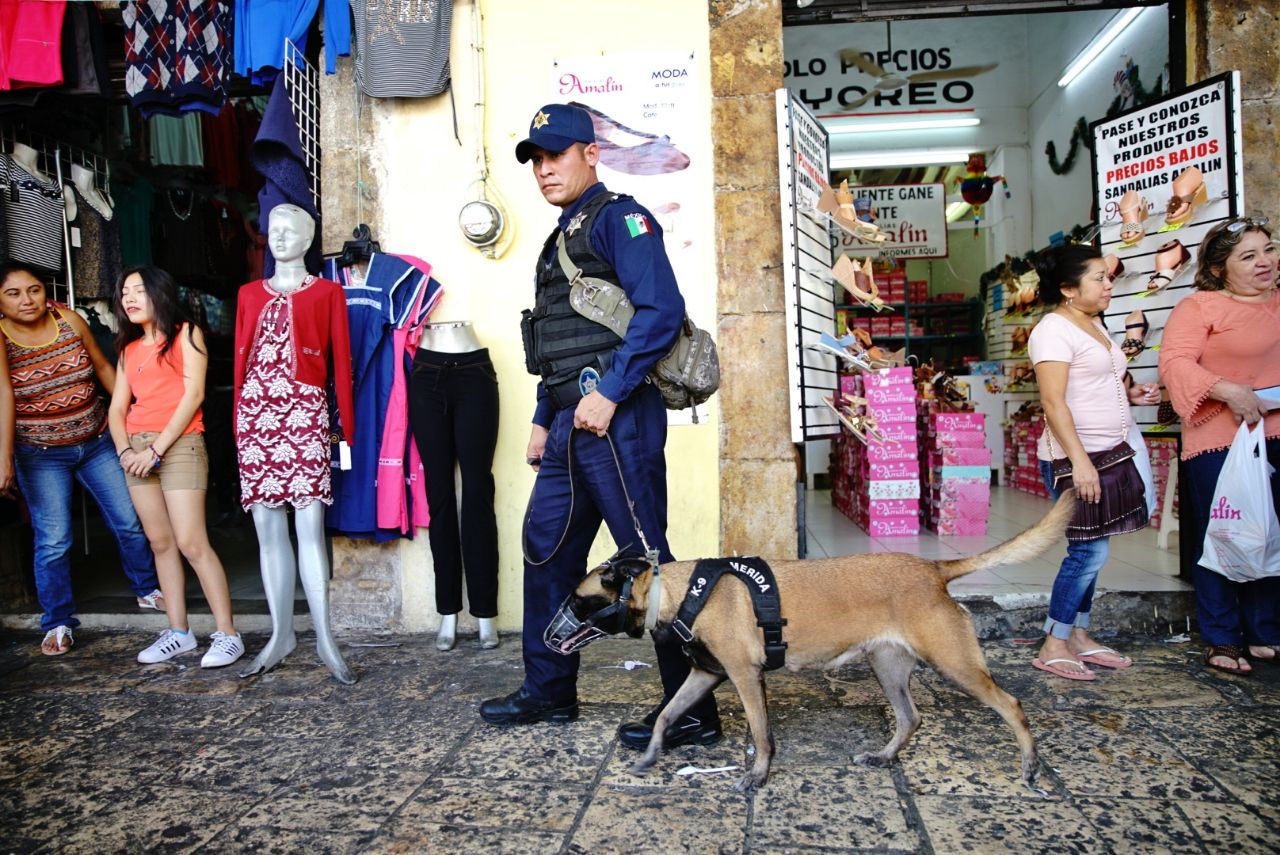 Mérida, 27 de diciembre de 2018.— El nivel de seguridad de Mérida, reconocido a nivel nacional, es en buena medida fruto del trabajo de la Policía Municipal de Mérida, que en esta temporada y a petición del alcalde Renán Barrera redobla la vigilancia en las calles del Centro para inhibir la comisión de delitos.
