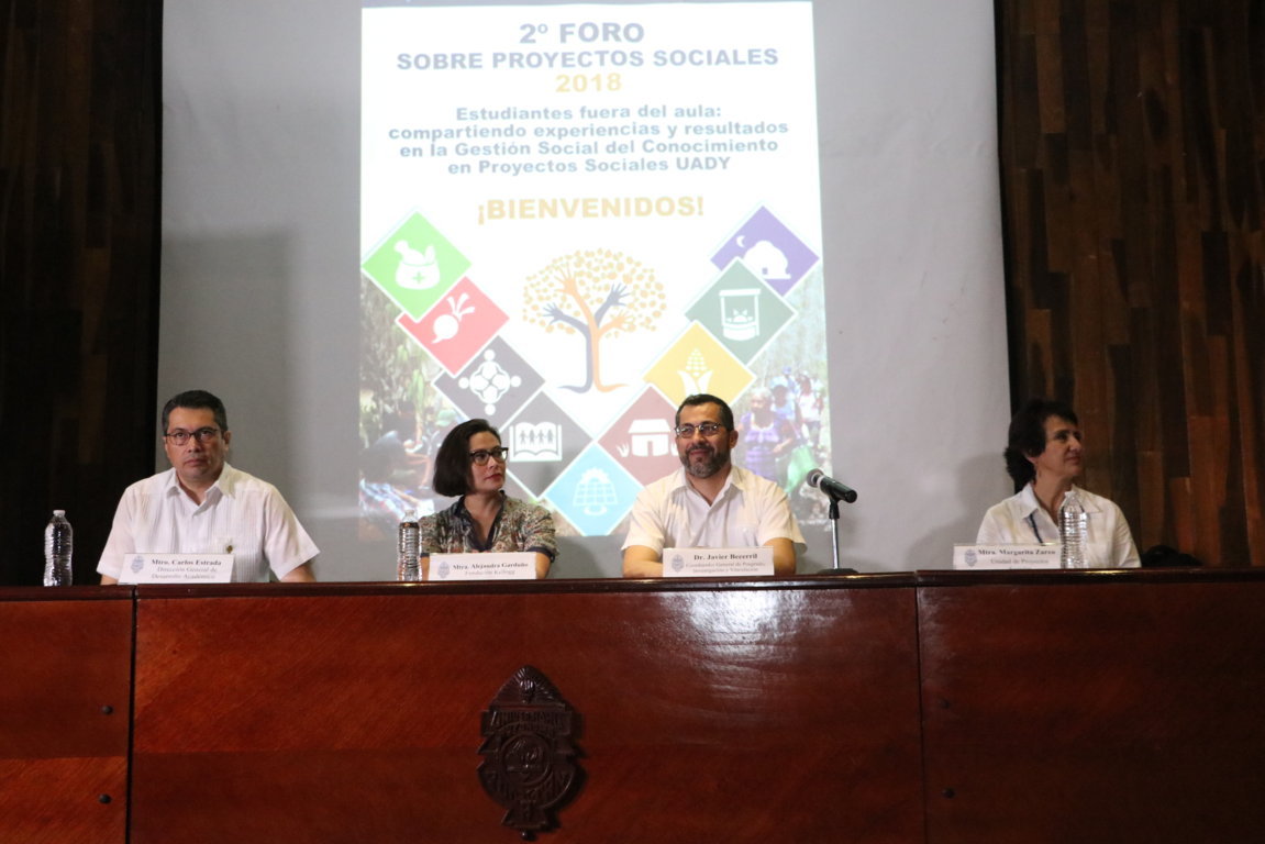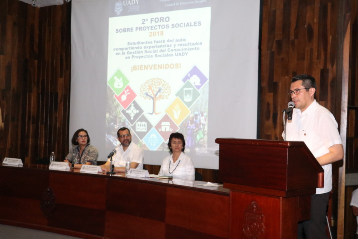 Con el objetivo de generar un espacio de análisis y reflexión para estudiantes en torno al aprendizaje en escenarios reales y permitiendo visibilizar los alcances en su formación integral al participar en dichos proyectos sociales, se realizó el 2° Foro Proyectos Sociales 2018 “Estudiantes fuera del aula: compartiendo experiencias y resultados en la Gestión Social del Conocimiento en Proyectos Sociales UADY”.