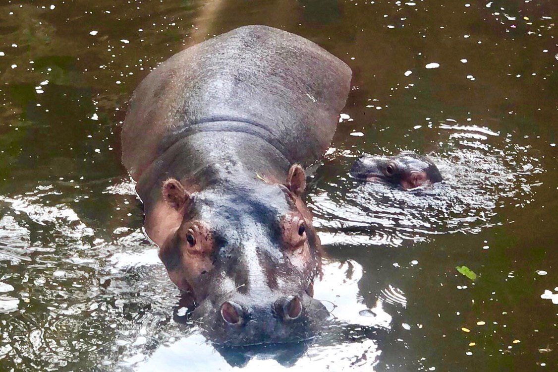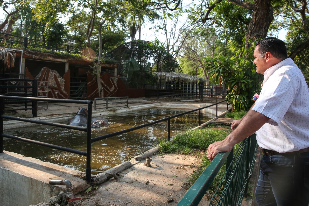 En la visita reciente a ese lugar, Renán Barrera conoció al nuevo integrante de la familia de hipopótamos, que nació la madrugada del lunes 15 de abril, luego de un período de gestación de 240 días, es decir, 8 meses.