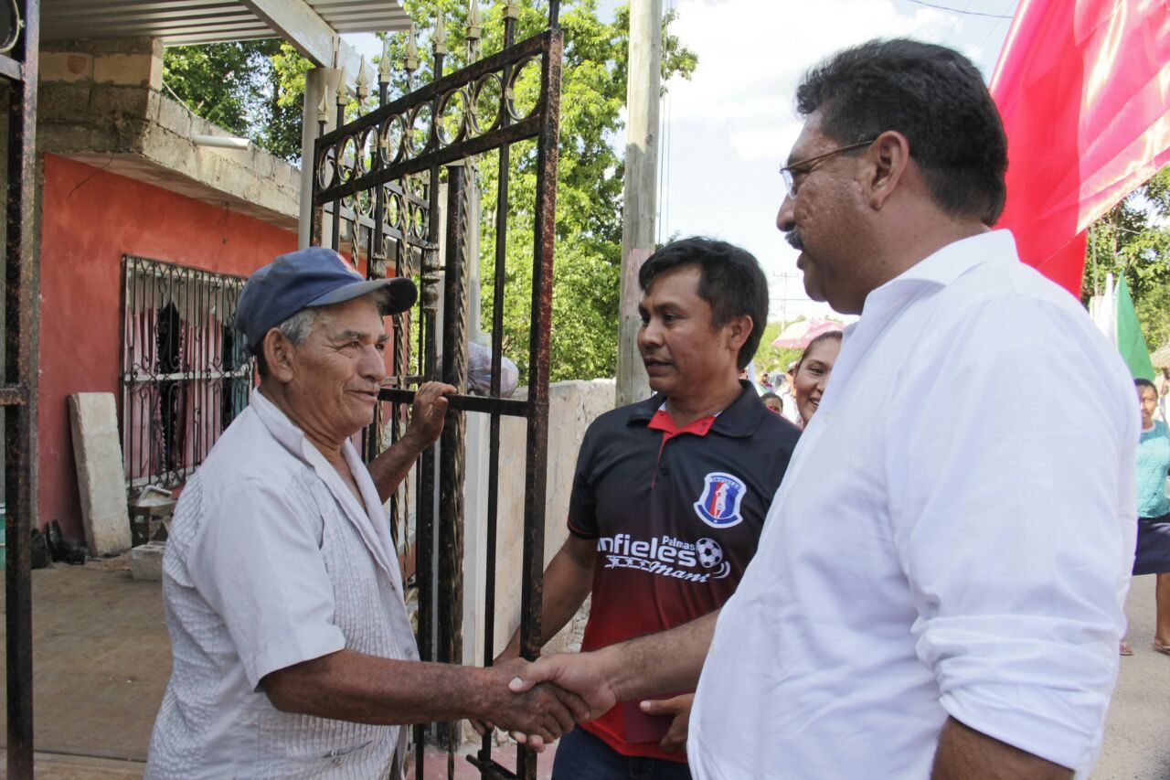 El candidato saludó de mano a los vecinos con quienes platicó sobre su propósito de gestionar recursos para que los yucatecos del sur puedan mejorar su calidad de vida.