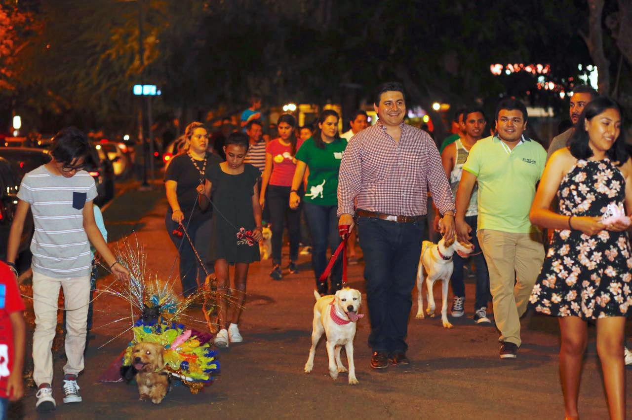 En familia, jóvenes acompañados de sus mascotas con ingeniosos disfraces se dieron cita en la explanada del parque de la colonia Alemán para celebrar la tercera edición del Carnaval Canino, en una tarde en la que la convivencia fue el eje de la diversión.
