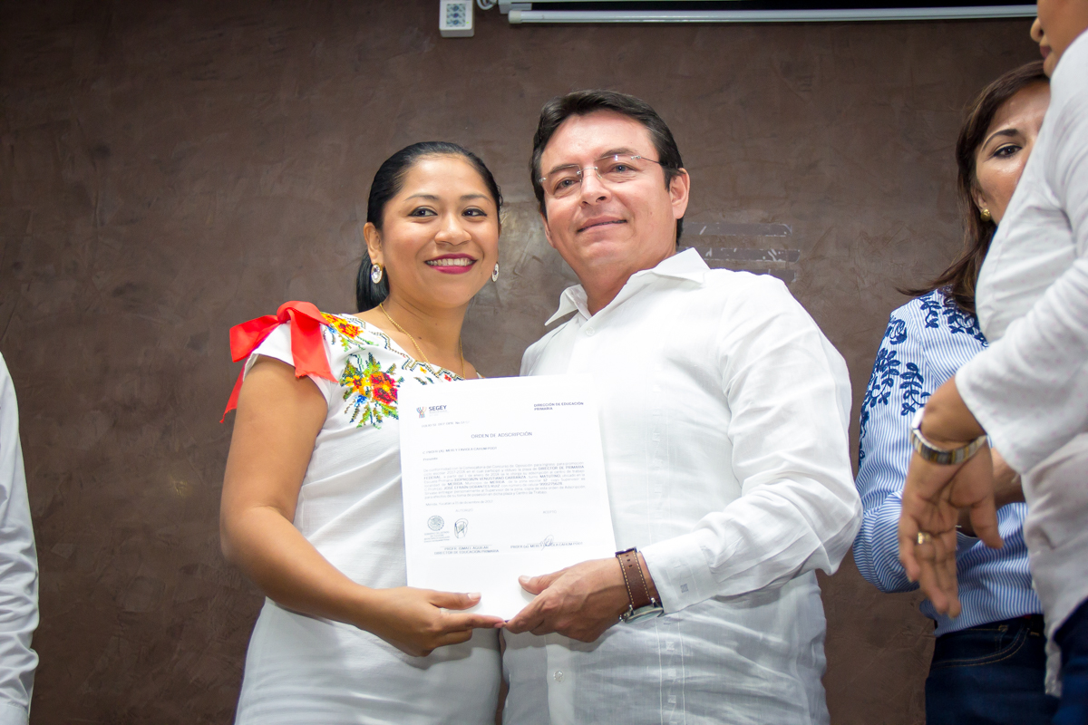 “Me parece muy bueno que sea por medio de una evaluación, porque ahí demostramos los conocimientos que tenemos. Fue un proceso largo, pero estuvimos muy pendientes junto con la autoridad educativa para asegurar su transparencia”, señaló la maestra Nilma Natalia Braga Monforte, quien recibió su nombramiento como directora de educación especial del Usaer 26 en Tizimín.