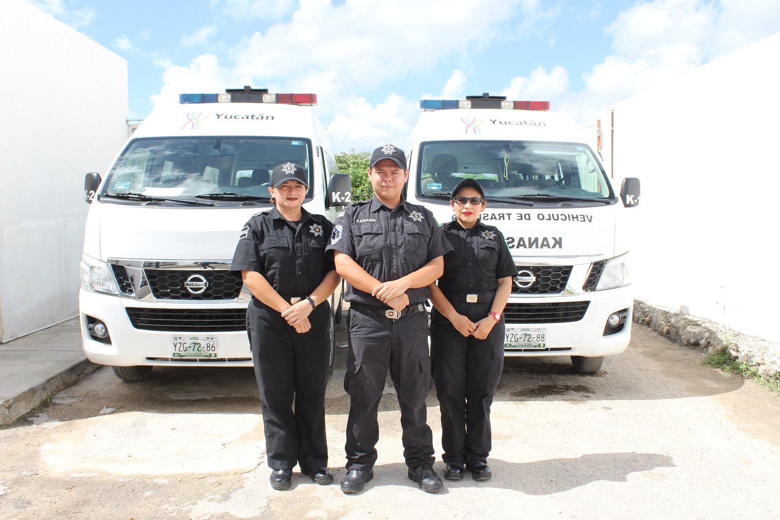 Los Servicios de Paramédicos de la Policía Municipal de Kanasín cuentan con dos vehículos de traslado para atender incidentes, o bien, para programar traslados a hospitales a personas que tienen citas agendadas o con alguna discapacidad y que no cuentan con los recursos para desplazarse a los nosocomios.