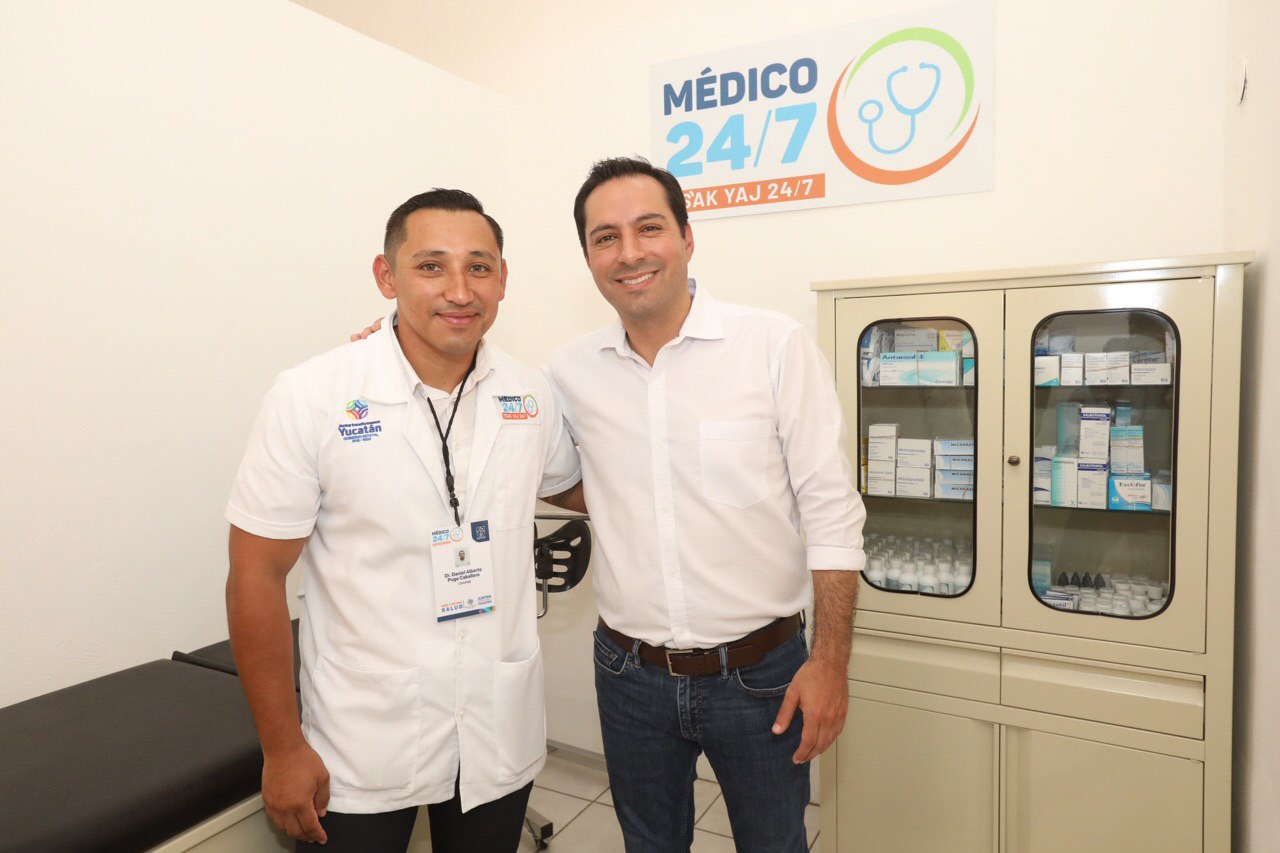 Con el programa “Médico 24/7” se busca que los yucatecos puedan tener atención médica complementaria después de haber finalizado el horario de labores en los Centros de Salud o clínicas públicas, para ello se instalaron módulos de atención que funcionan cuando los doctores de la comunidad se encuentran fuera de su jornada laboral, es decir que, con este servicio se completa el tiempo en que no hay médico activo en las poblaciones.