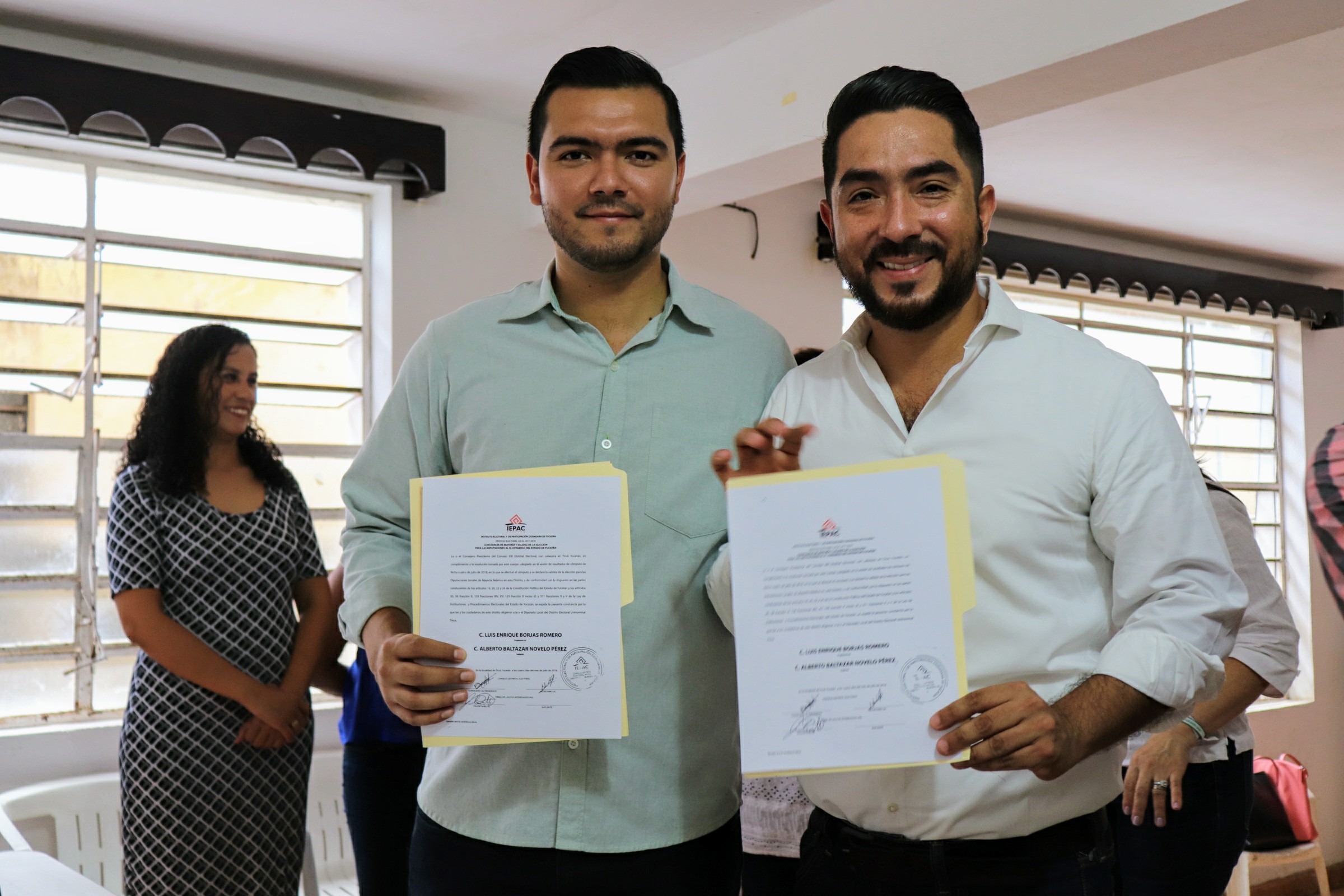 El ahora diputado local, recibió el documento de manos de Santos David Chí Navarrete, Consejero Presidente ante el Consejo Distrital XIII, del IEPAC, quien en presencia de representantes de otros partidos y consejeros, dio lectura al acta, entregando después la Constancia de mayoría de votos a Luis Borjas Romero, como diputado Local propietario y a Alberto Novelo Pérez, como diputado Suplente.