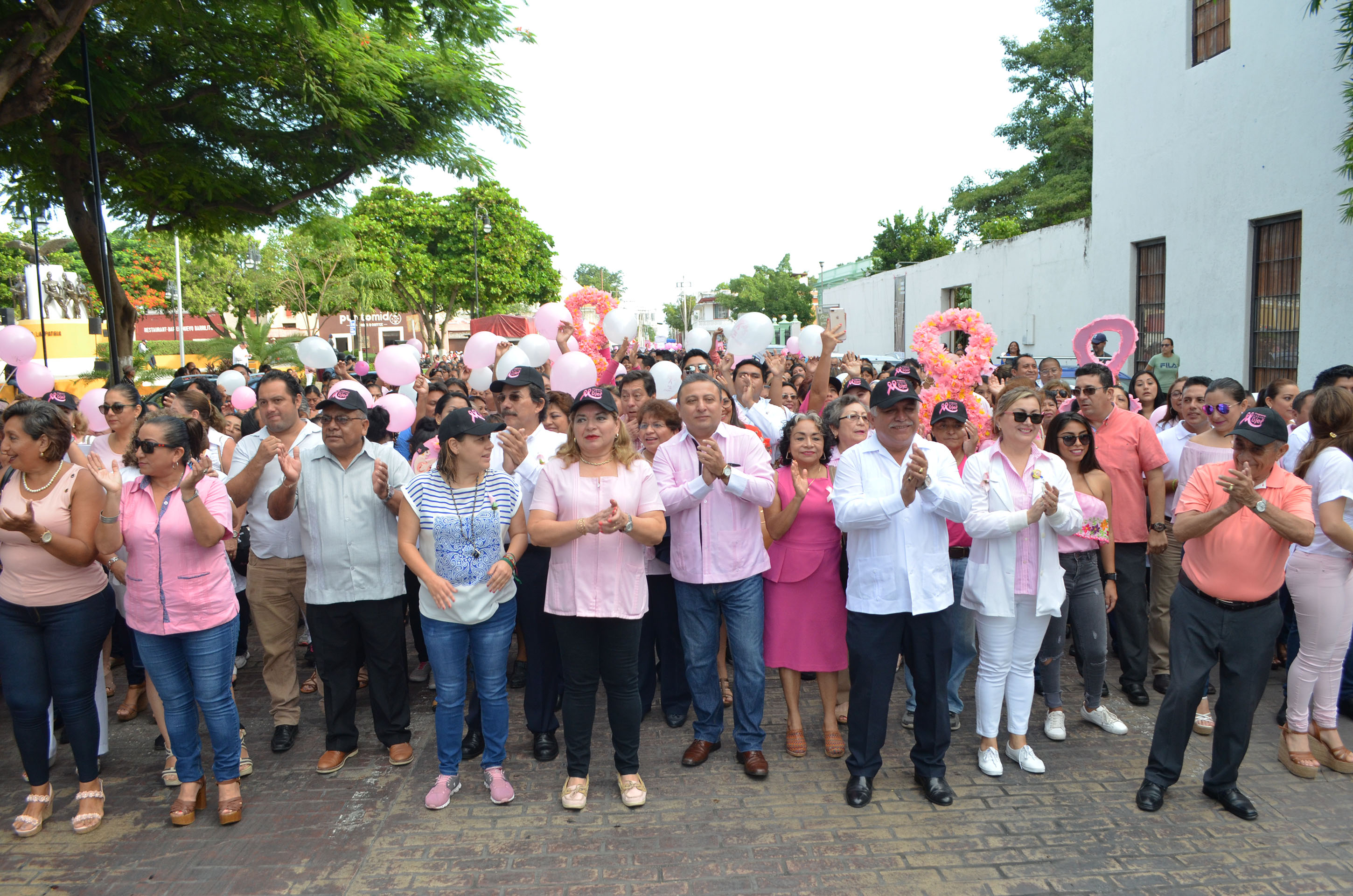Mérida, Yucatán, 19 de octubre de 2018.- Más de cinco mil mujeres y hombres marcharon en las inmediaciones del Centro Histórico de esta ciudad, con la participación de autoridades del Gobierno de Estado y organizaciones de la sociedad civil, en el marco del Día Internacional de la Lucha Contra el Cáncer de Mama.