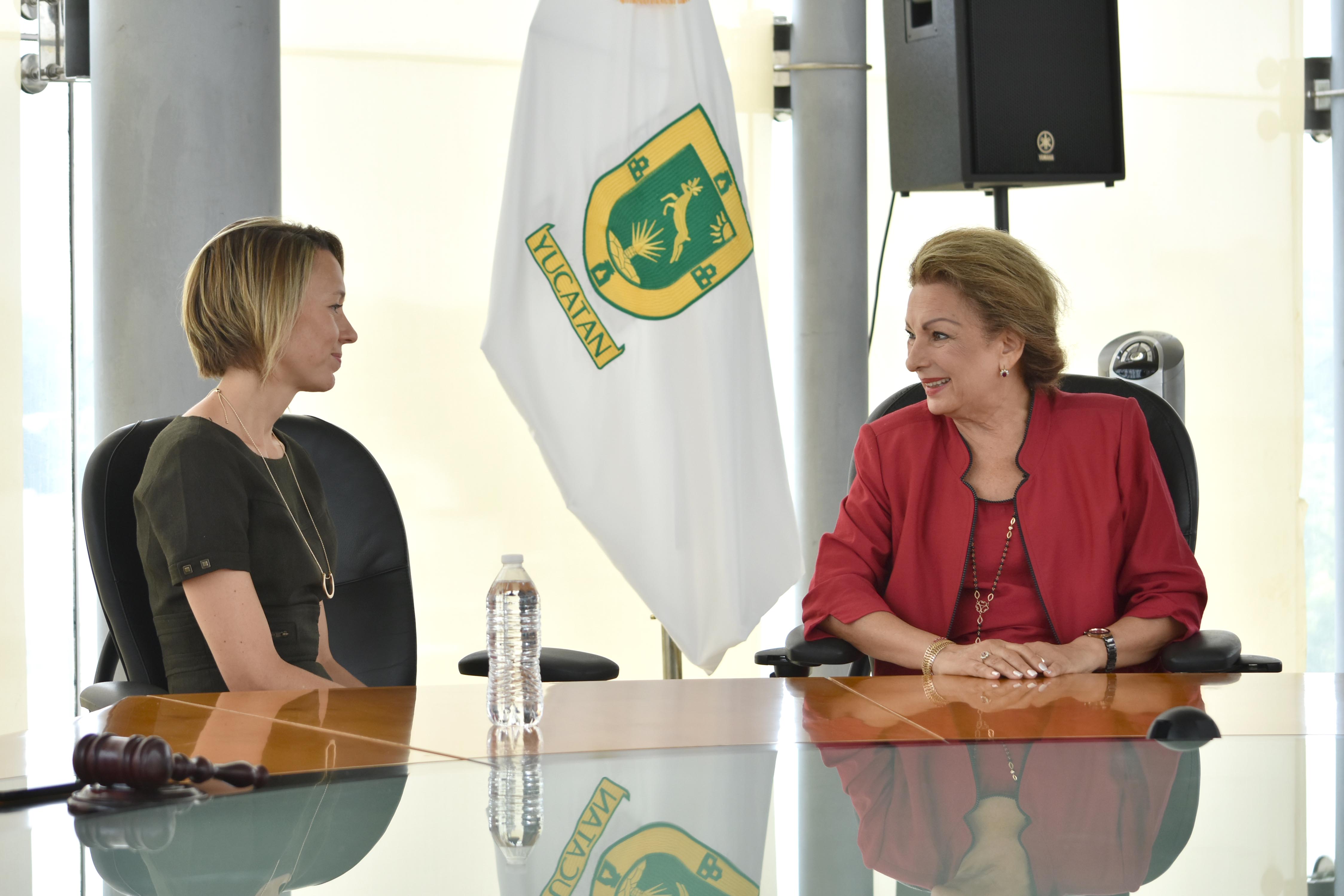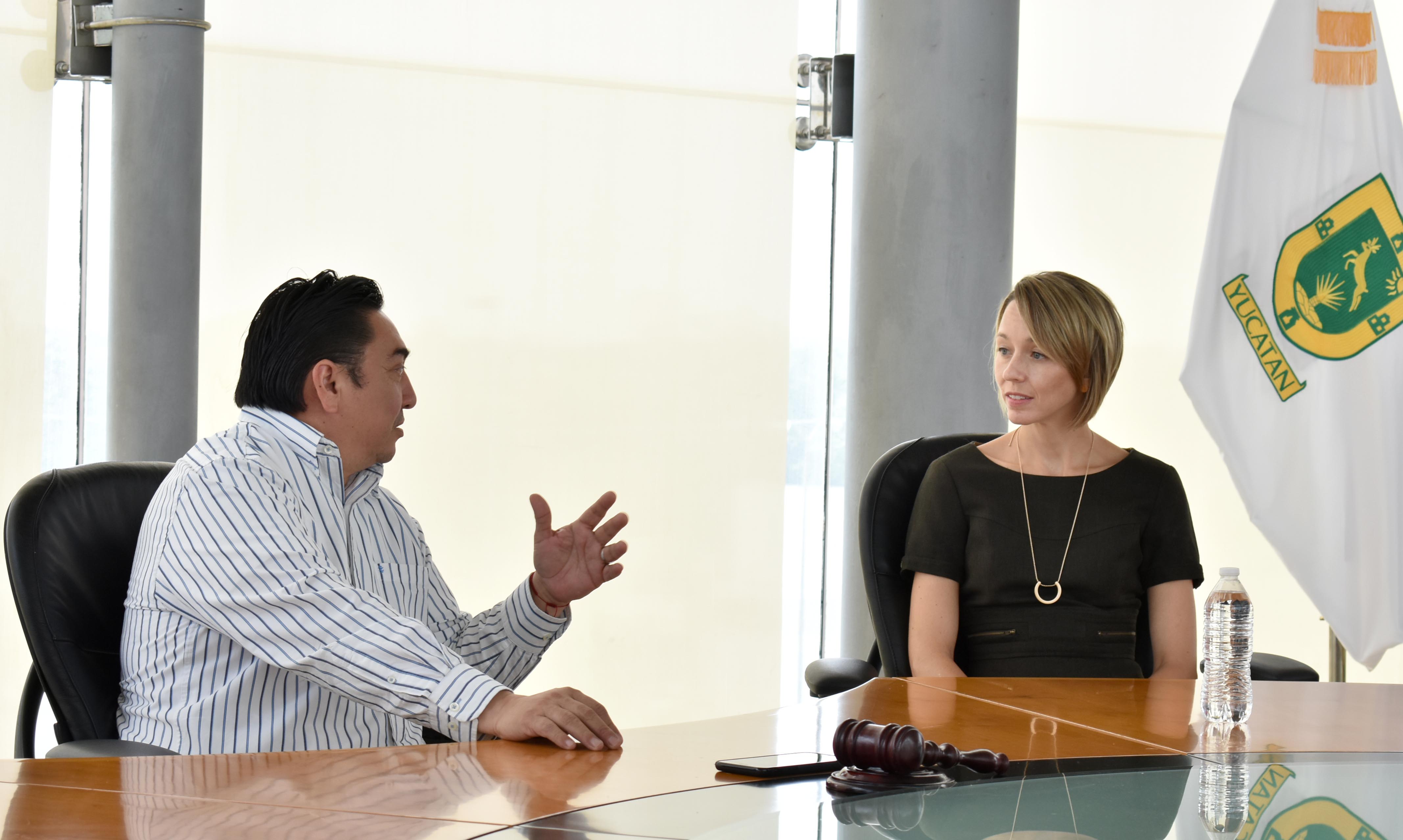 Magistradas y Magistrados del Tribunal Superior de Justicia del Estado y Consejeras y Consejeros de la Judicatura de Yucatán sostuvieron esta tarde una reunión con la Cónsul General de Estados Unidos en México Courtney Beale, en el marco de una visita de cortesía que la diplomática realizó a la sede del Poder Judicial.
