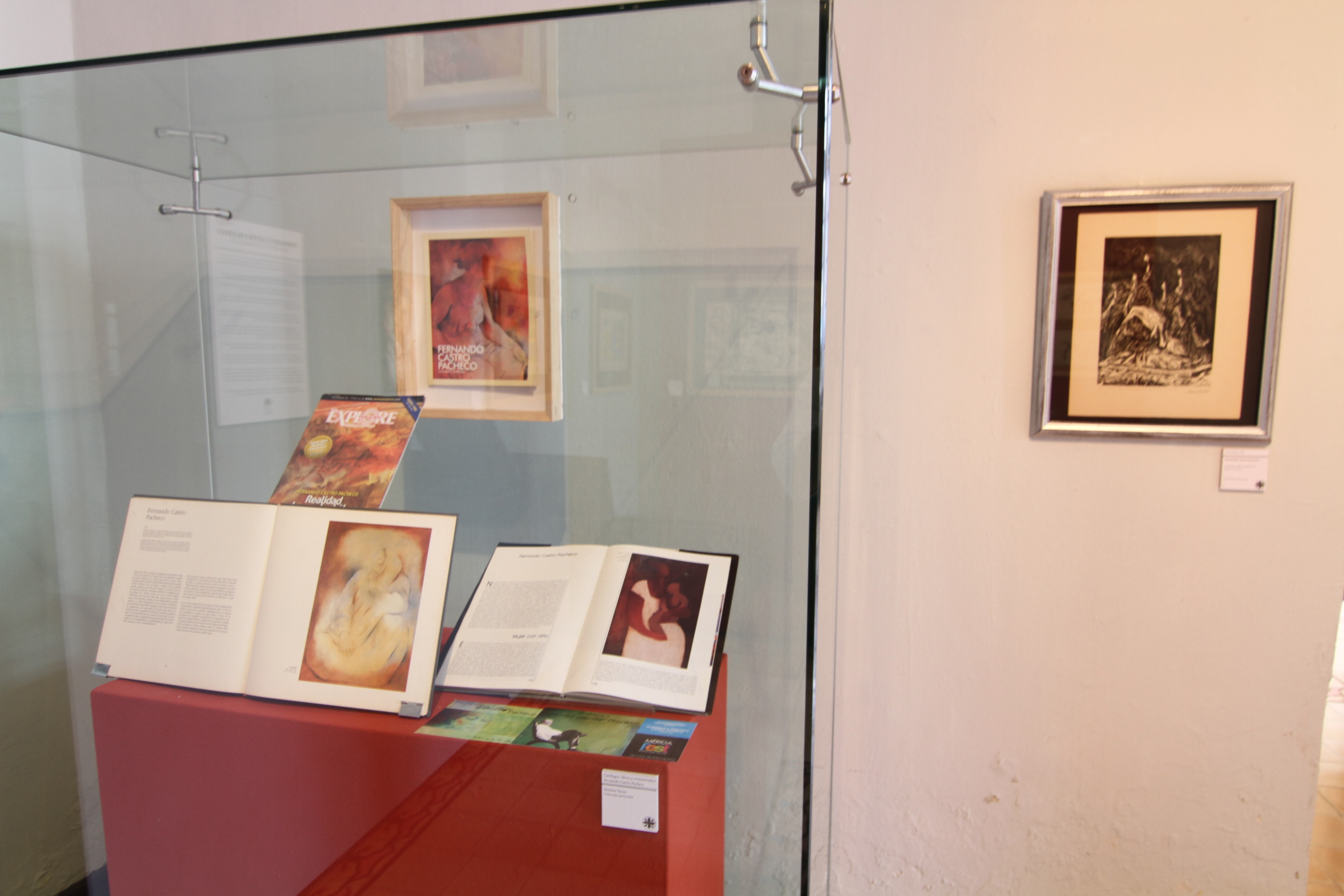 La exposición del museo permite ver diferentes épocas del trabajo del maestro yucateco en tres tintas sobre papel elaboradas en 1947 y el grabado sobre linóleo “Tierra y libertad”. De los textos expuestos se incluyeron el catálogo “Fernando Castro Pacheco”, editado por el Ayuntamiento de Mérida en 1999, “Nuestra pintura mexicana” (edición privada de Seguros América, 1986), de las revistas Explore Yucatán y Revista Yucatán que le dedicaron espacio a la obra del artista en sus ediciones en 2014 y 2015, entre otros trabajos.