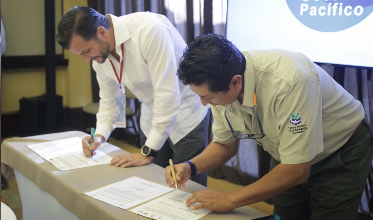 El director del Parque Nacional Galápagos, Walter Bustos, quien firmó en representación del Gobierno de Ecuador, reconoció el esfuerzo de México al proteger más del 22 por ciento de las zonas marinas y entregó al funcionario mexicano una “distinción con la que honramos los esfuerzos de líderes ambientales”.