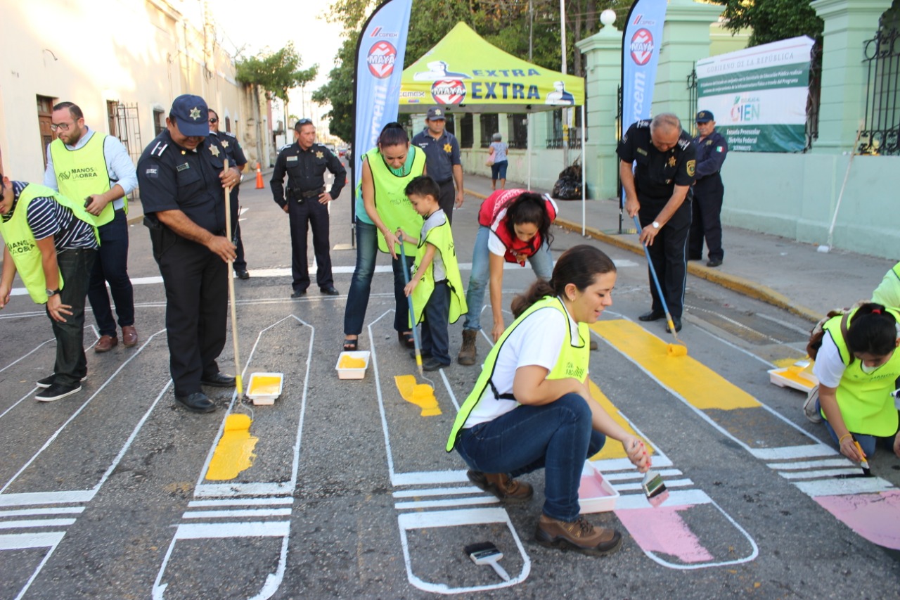 En un esfuerzo conjunto entre el Instituto Municipal de Planeación, la Policía de Municipal de Mérida y la empresa CEMEX el día de ayer se procedió a pintar el primer Paso Peatonal Artístico del municipio de Mérida en el cruce de la calle 57 por 50.