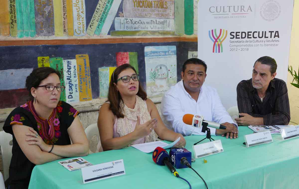 En representación del titular de la Secretaría de la Cultura y las Artes (Sedeculta), Roger Metri Duarte, el jefe del Departamento de Artes Visuales de la dependencia, Mario Beltrán García, acompañado de la integrante del Comité Directivo de la Mérida English Library (MEL), Silvia Zepein, anunció los pormenores del evento.