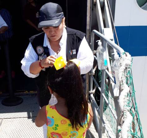 El funcionario indicó que una decena de verificadoras y verificadores efectúan filtros en los accesos a la embarcación. Asimismo, que estas medidas contribuyen a romper las cadenas de transmisión de la enfermedad así como otras infecciones gastrointestinales, por lo que recalcó “tener las manos limpias es evitar afecciones”.