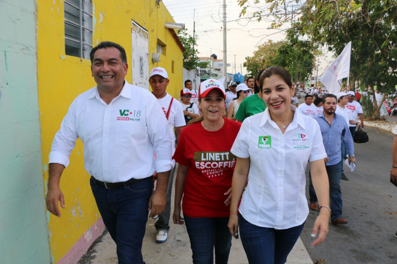 Acompañada del candidato a la presidencia municipal de Mérida, Víctor Caballero Durán y la aspirante a diputada local por el V distrito, Linett Escoffié, escucharon las inquietudes de las mujeres de la zona con relación a la falta de alumbrado público, mismo que se traduce en inseguridad.