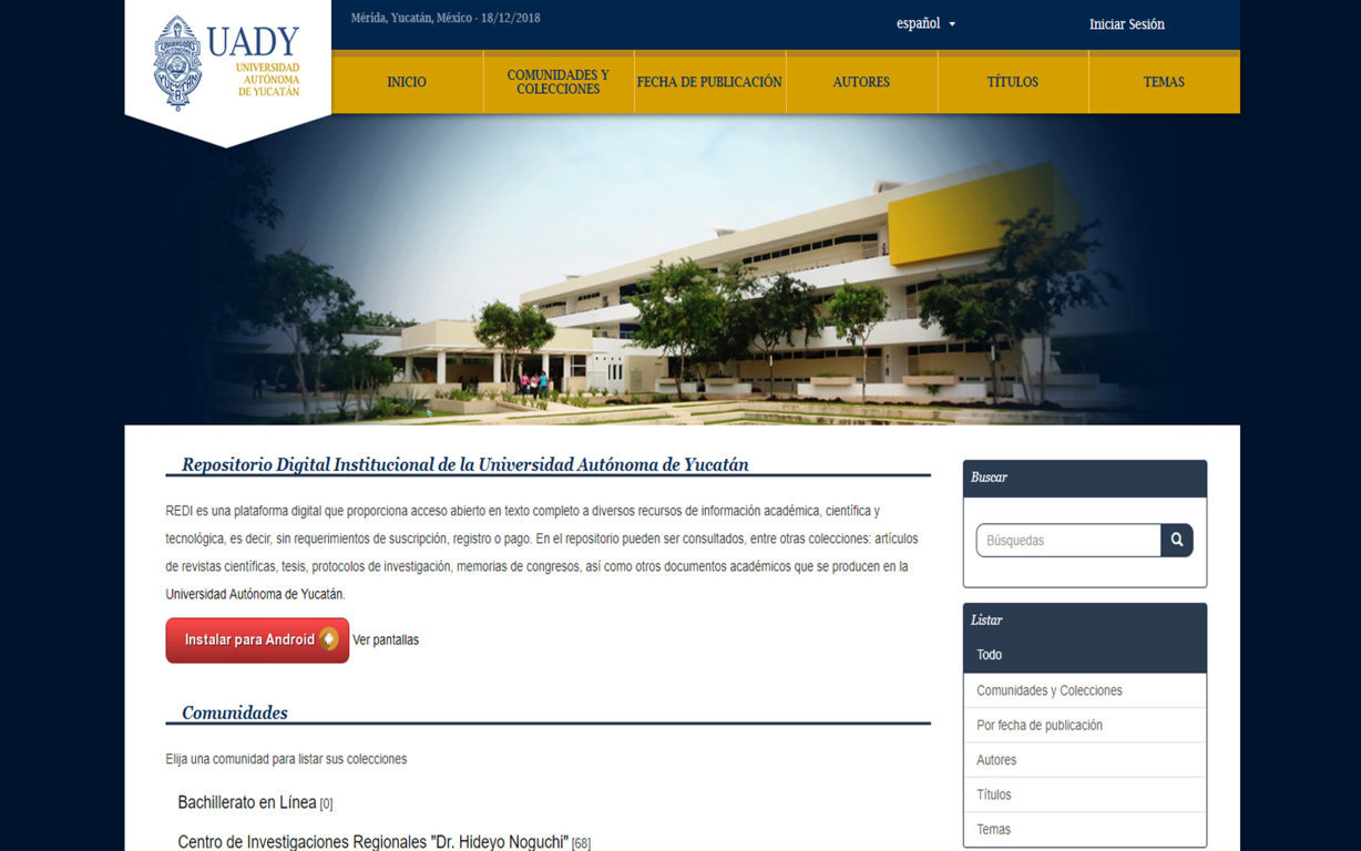 Con el objetivo de difundir el quehacer académico, científico, tecnológico y de innovación de la Universidad Autónoma de Yucatán (UADY), se creó el Repositorio Digital Institucional (REDI) para que la sociedad tenga acceso abierto al conocimiento generado, así como su integración y consumo por el Repositorio Nacional.